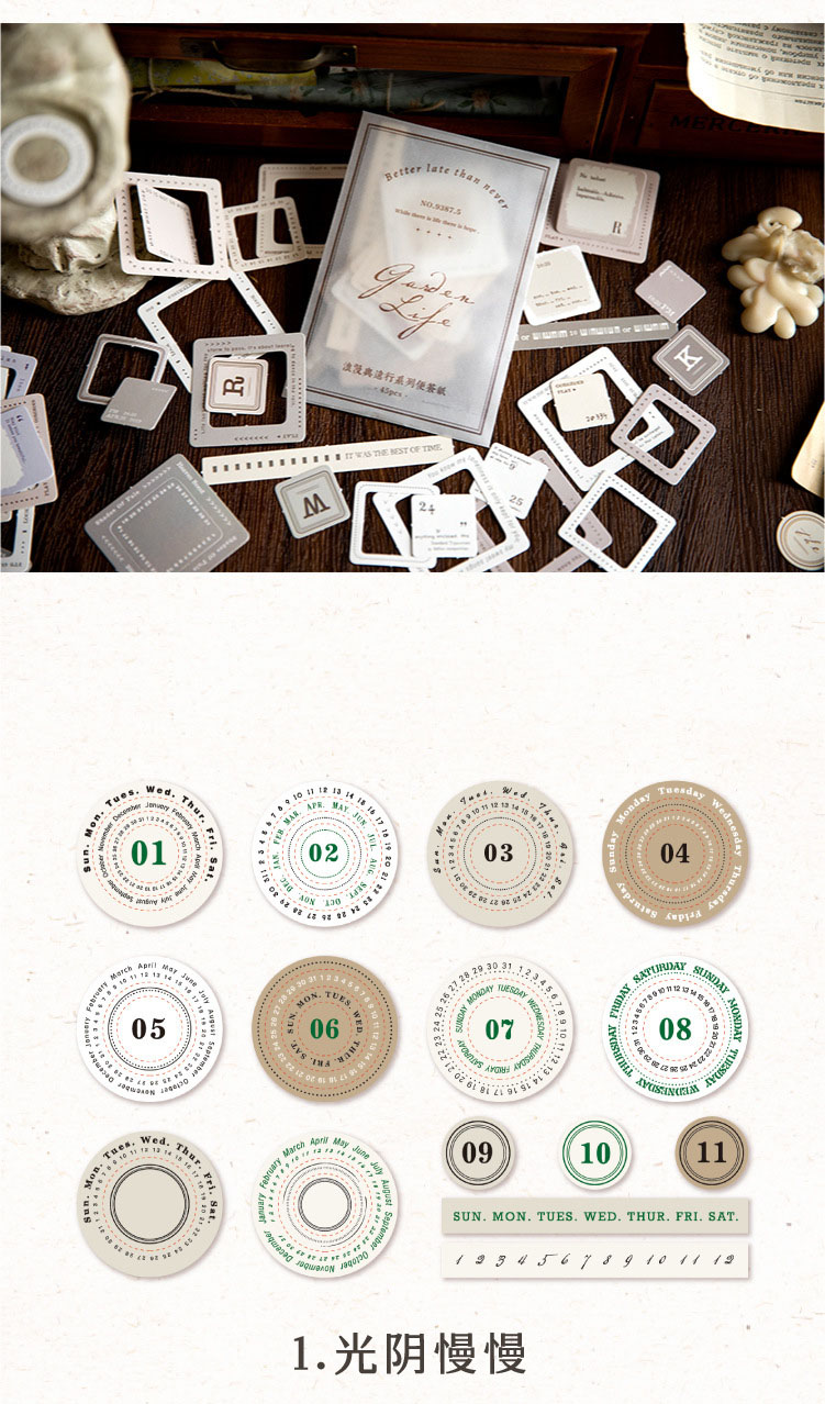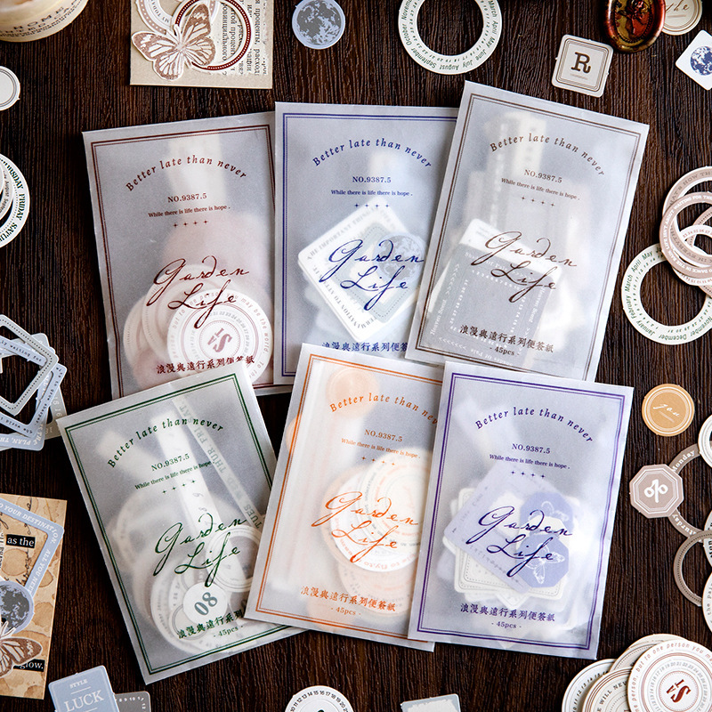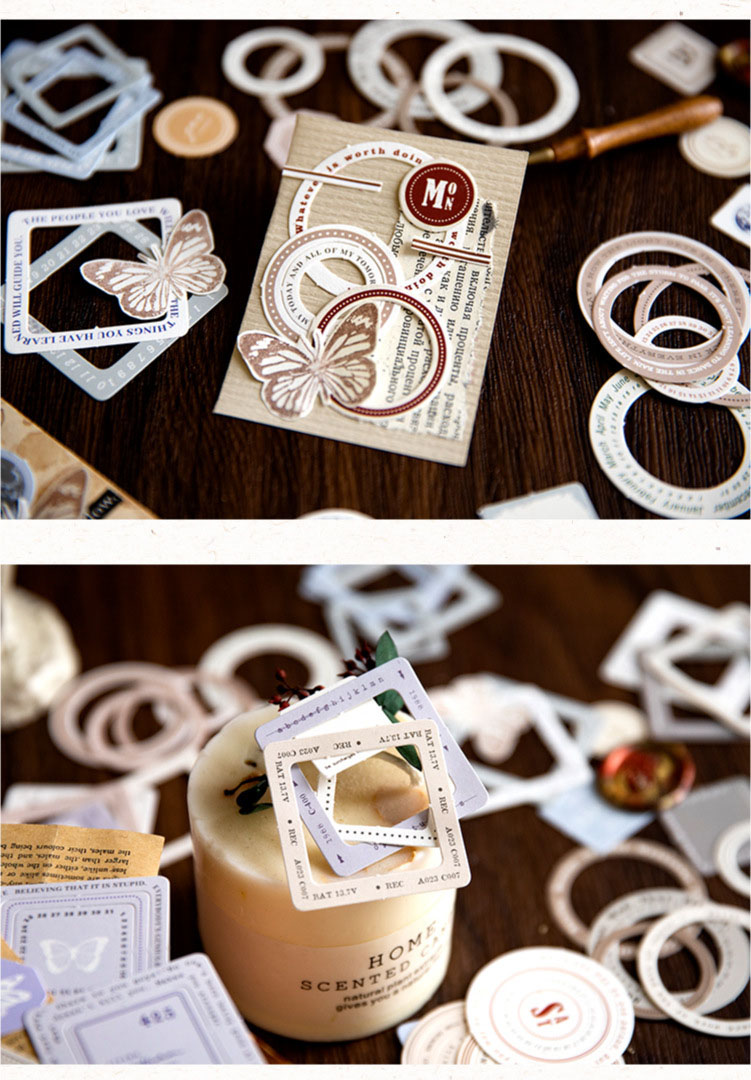 春夏新作 文具 素材紙メモ紙 手帳素材 アンティーク 幾何学ラベル 枠 蝶 星月天体 45枚入