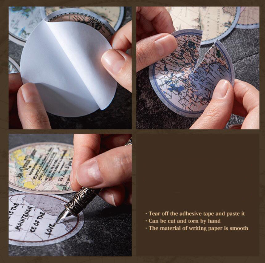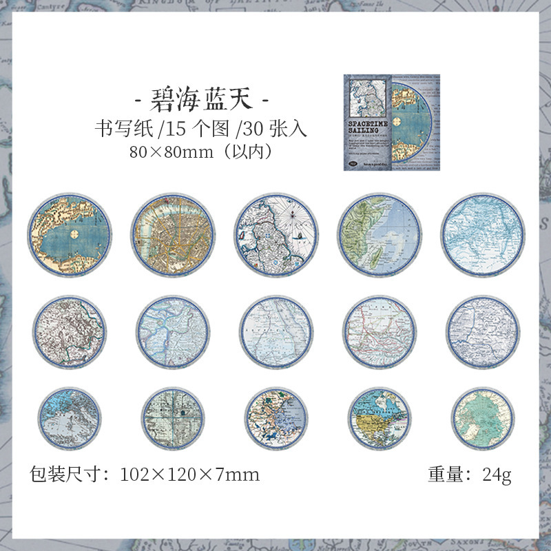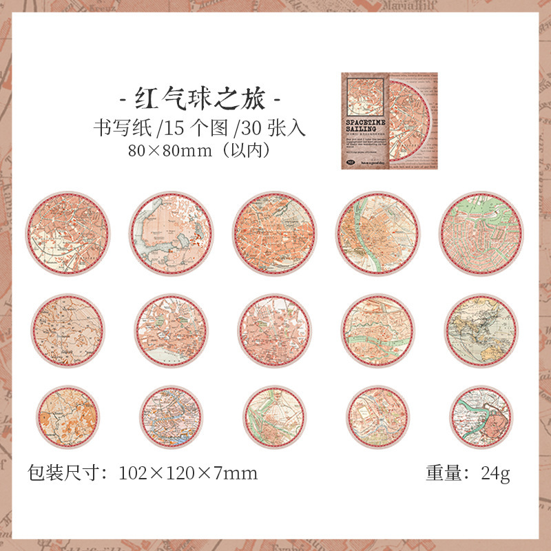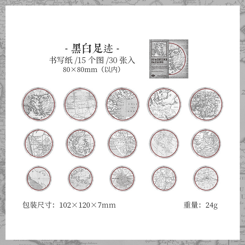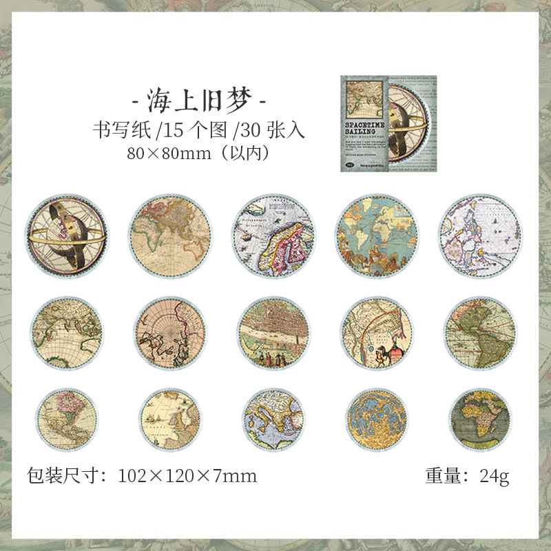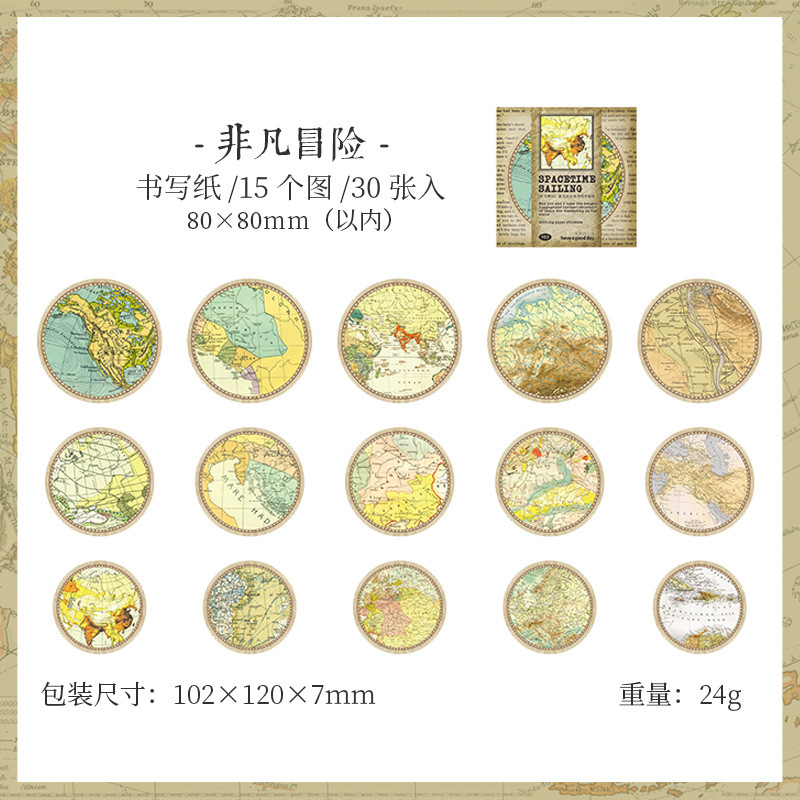 夏新作 文具 シール貼紙 封口貼 アンティーク 手帳素材 マップ地図 旅行 幾何学ラベル イラスト 30枚入