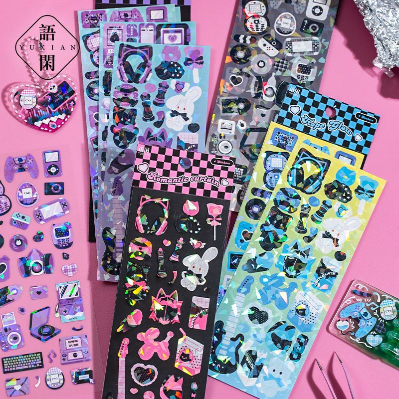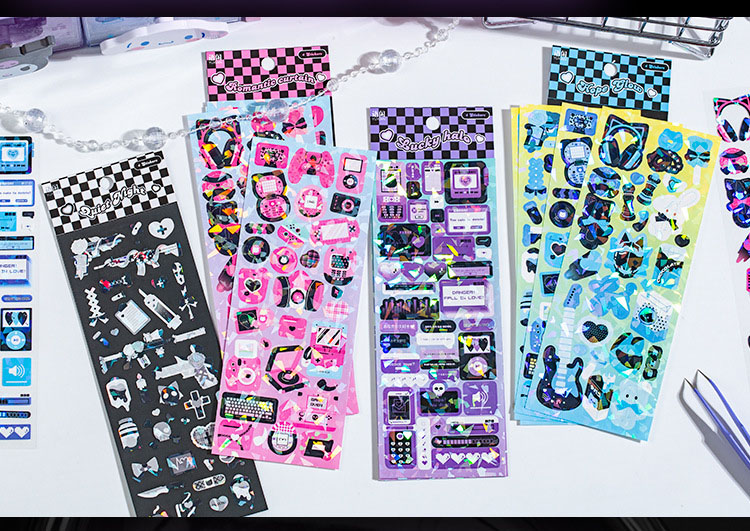 春夏新作 文具 シール貼紙 手帳素材 封口貼 可愛い動物 猫兎熊おもちゃ sweetcool 幾何学 生活雑貨 4枚入
