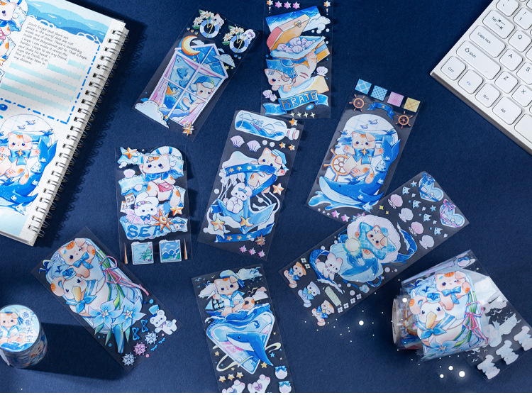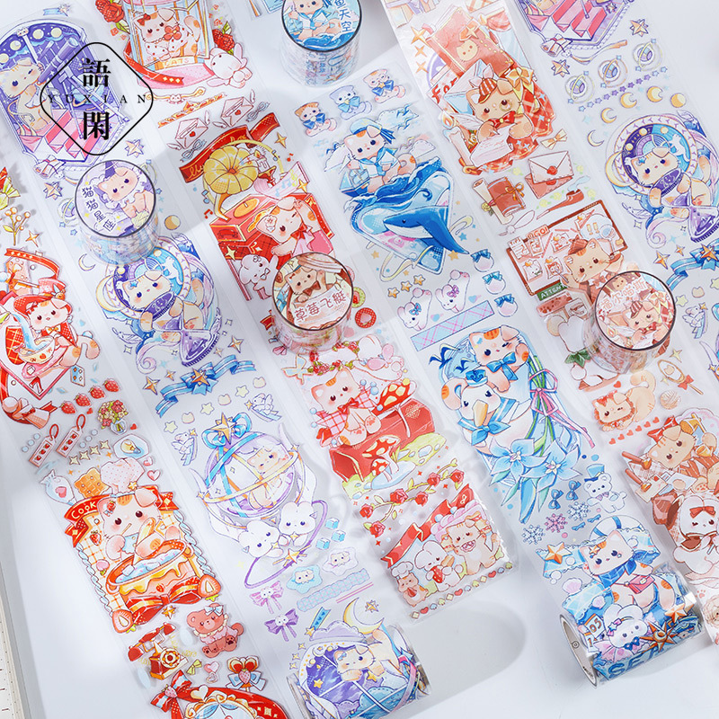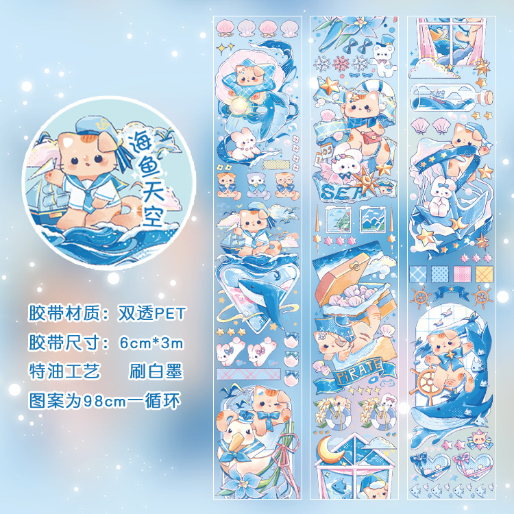現在カテゴリ:全て商品 > 春夏新作 文具 PETシール貼紙 手帳素材 マスキングテープ 可愛い動物 猫魚 熊兎 海洋生物花 6cm*3m