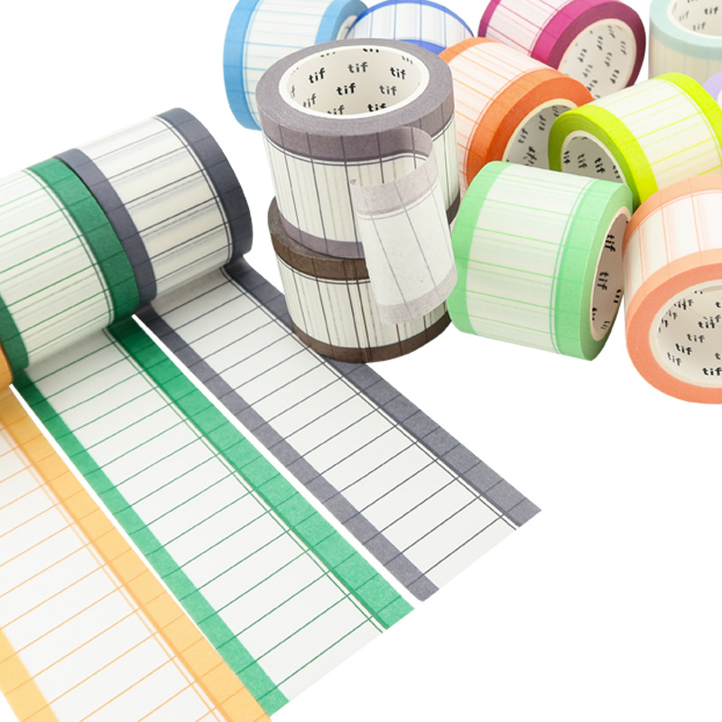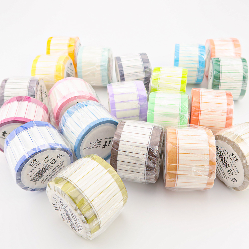塩系文具 シール貼紙 手帳素材 マスキングテープ マカロンカラー 幾何学チェック柄 35mm*10m 24色