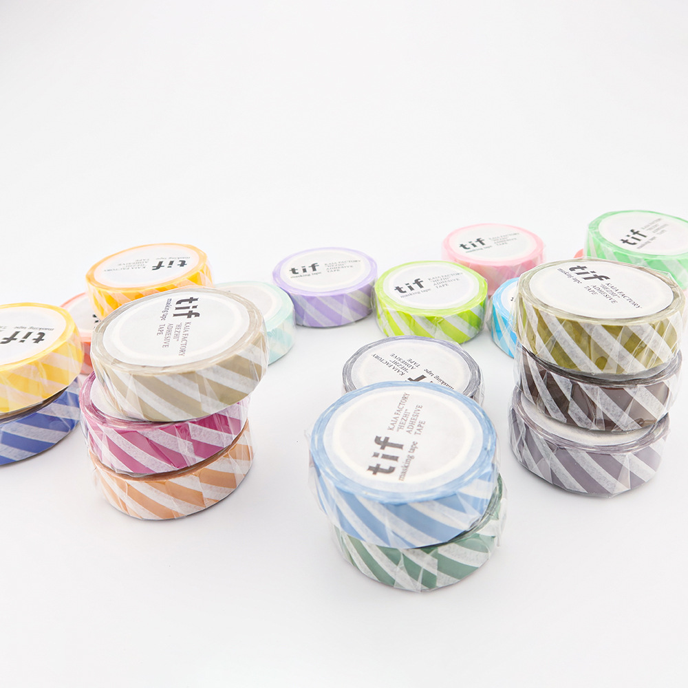 現在カテゴリ:全て商品 > 塩系文具 シール貼紙 手帳素材 マスキングテープ マカロンカラー 幾何学ストライプ柄 15mm*10m 24色