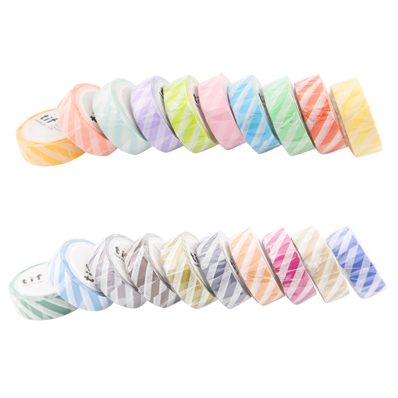 塩系文具 シール貼紙 手帳素材 マスキングテープ マカロンカラー 幾何学ストライプ柄 15mm*10m 24色