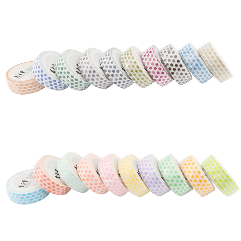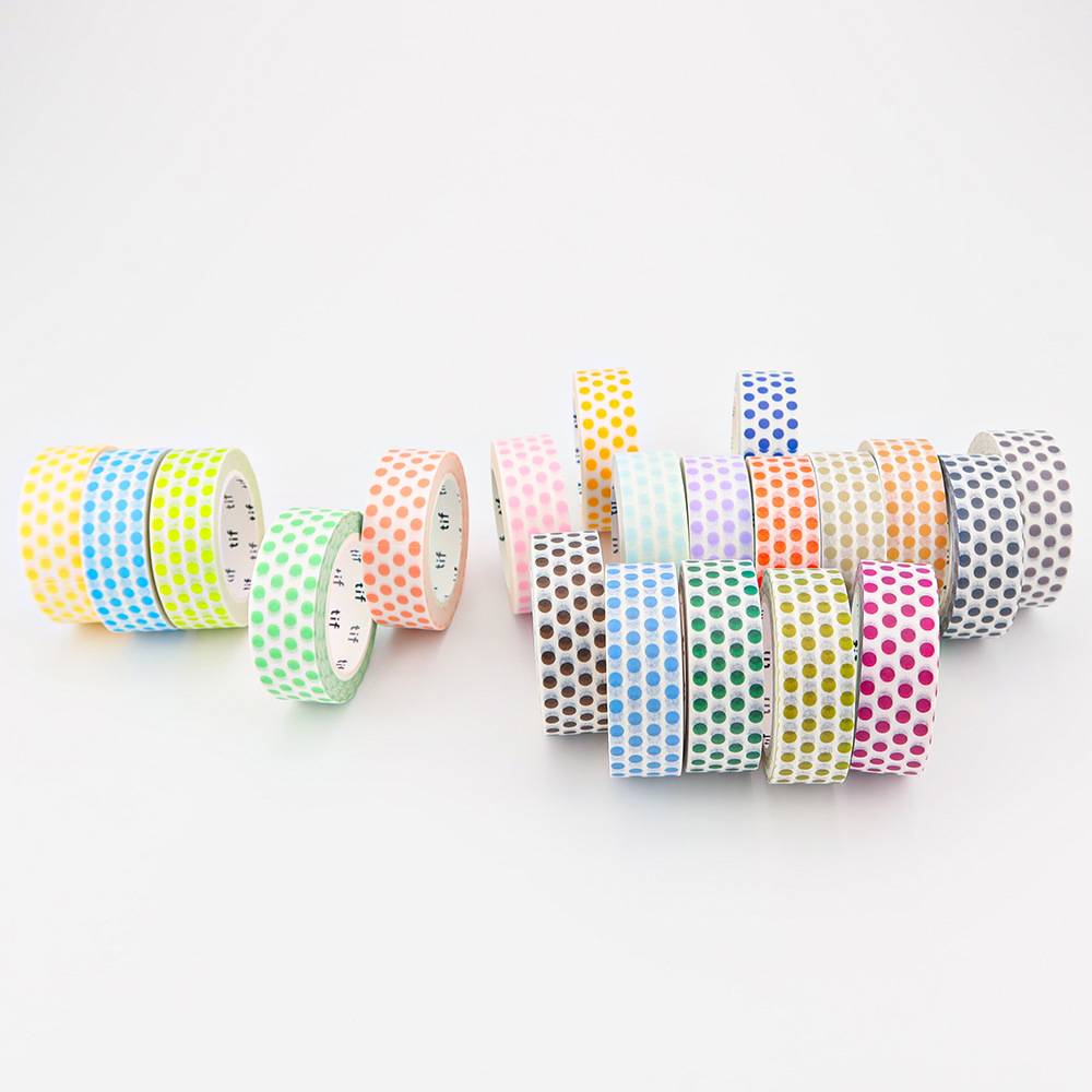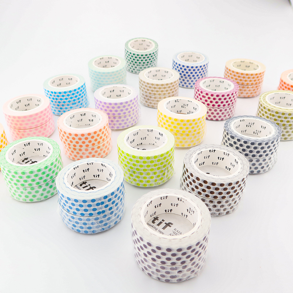 現在カテゴリ:全て商品 > 塩系文具 シール貼紙 手帳素材 マスキングテープ マカロンカラー 幾何学ドット柄水玉 15mm*10m 24色