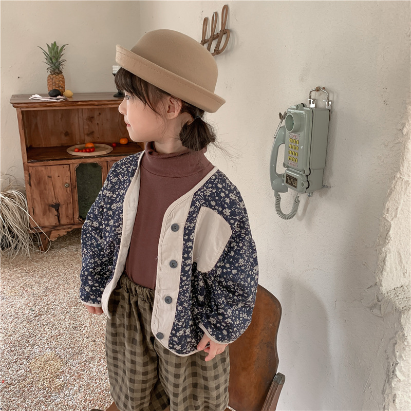 お勧め 春夏新作 子供服 森系男女 ジャケット ブルゾン 小花柄上着 ジャンパー レトロ トップス 80-130