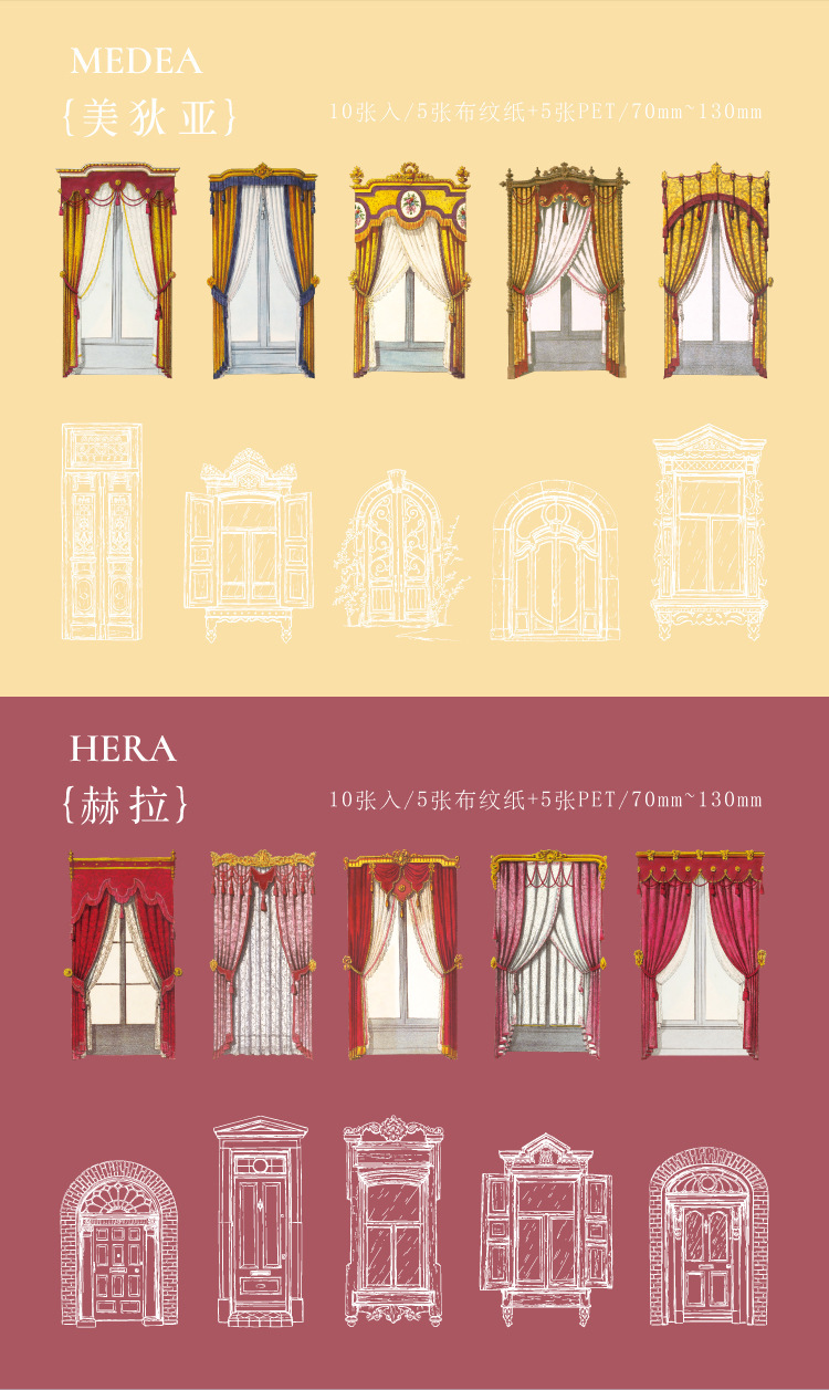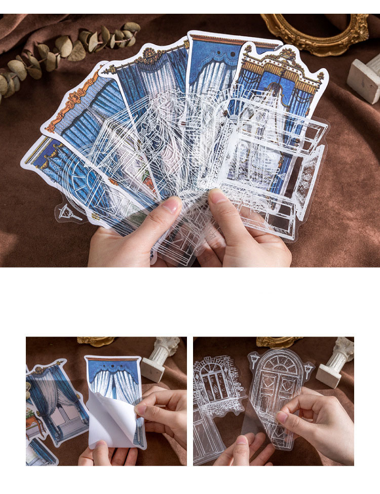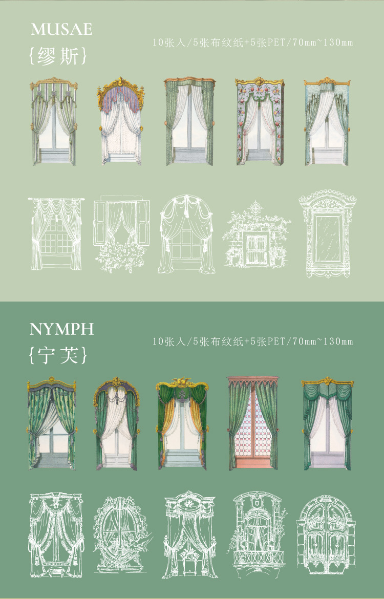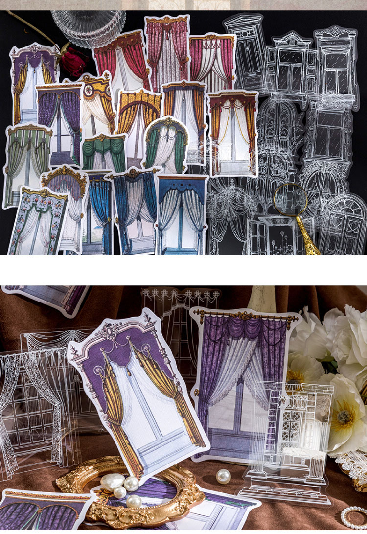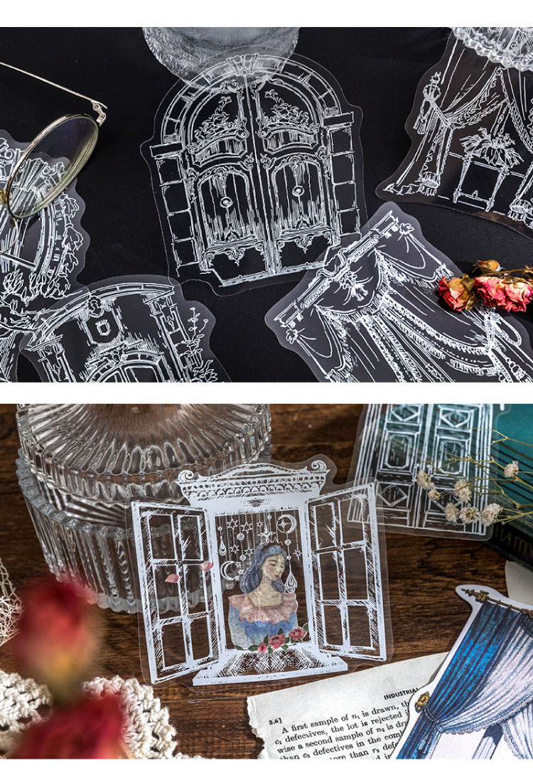現在カテゴリ:全て商品 > 文具 PET+紙 シール貼紙 手帳素材 アンティーク 幾何学ラベル 窓カーテン 封口貼 花柄 レース 10枚入
