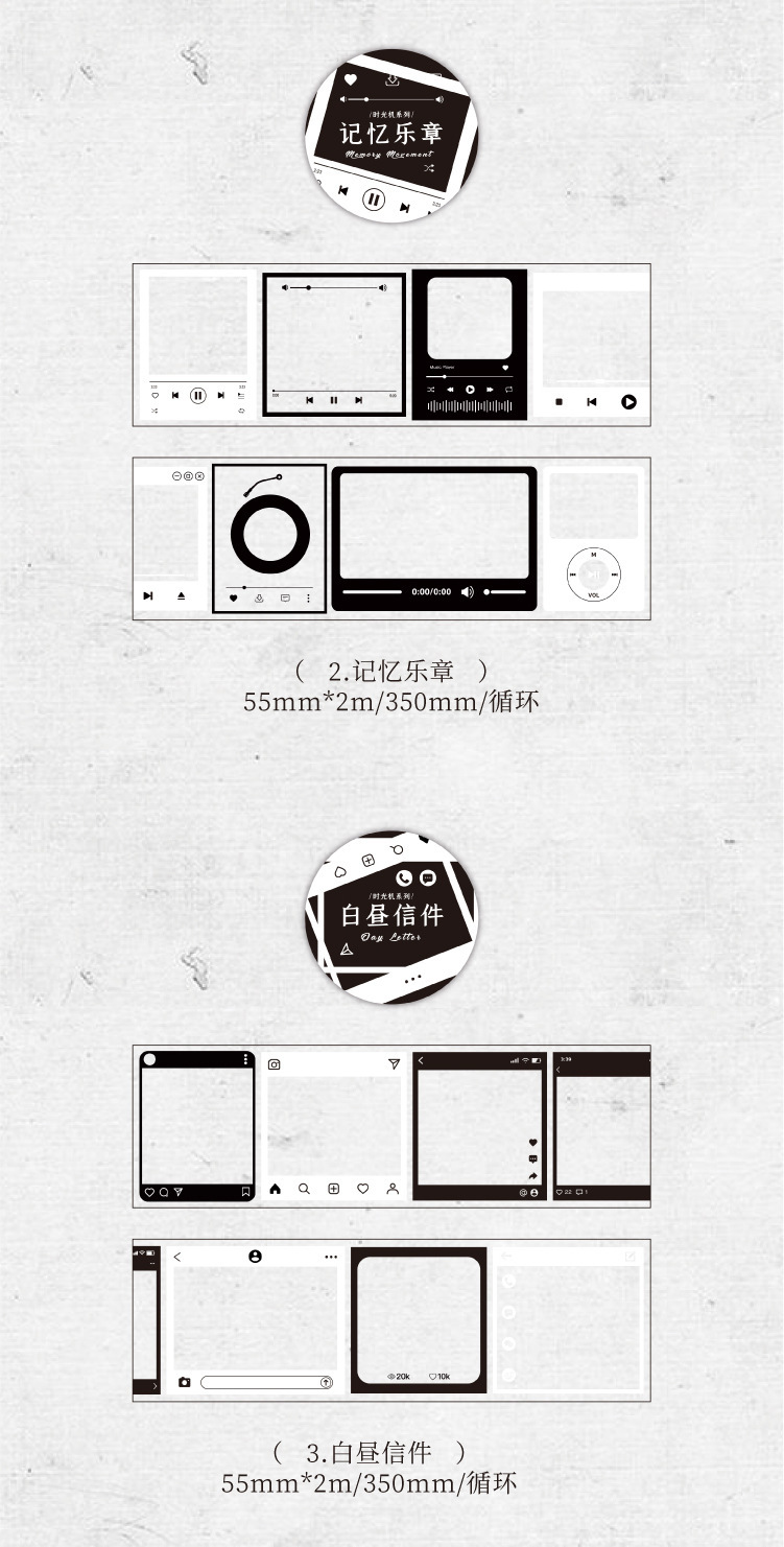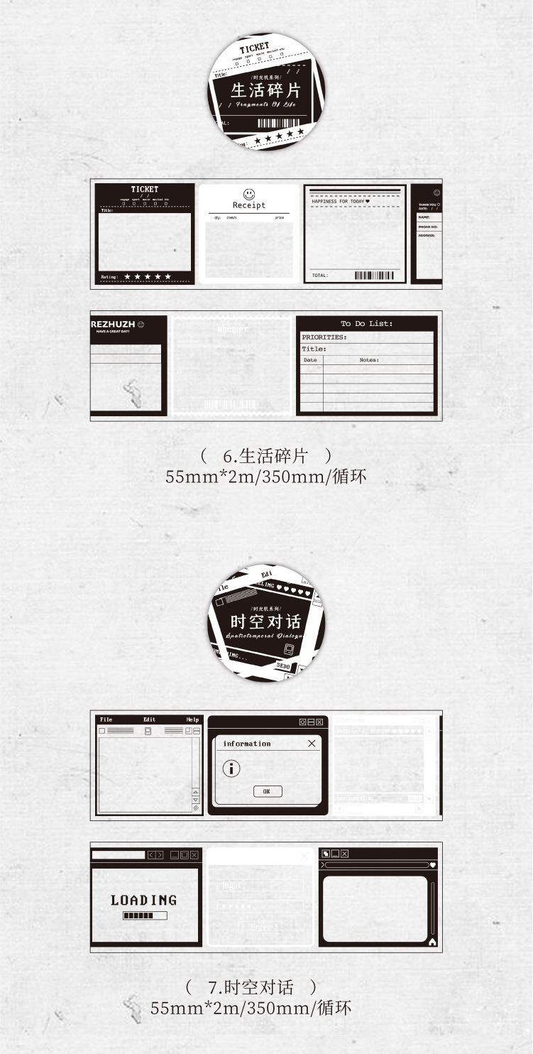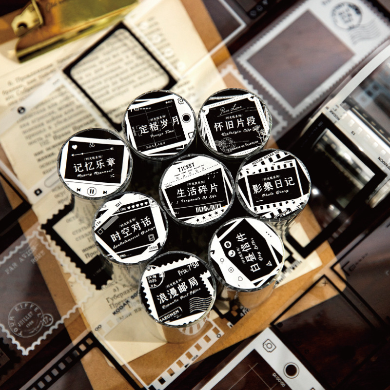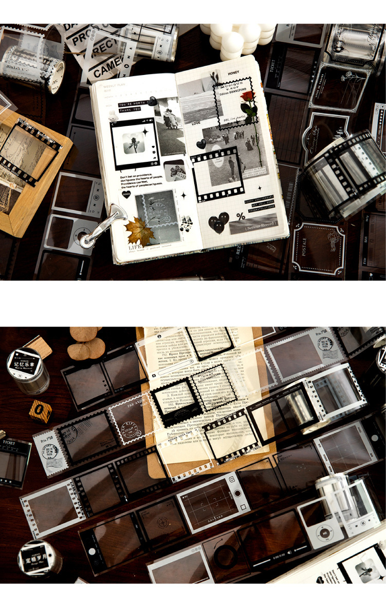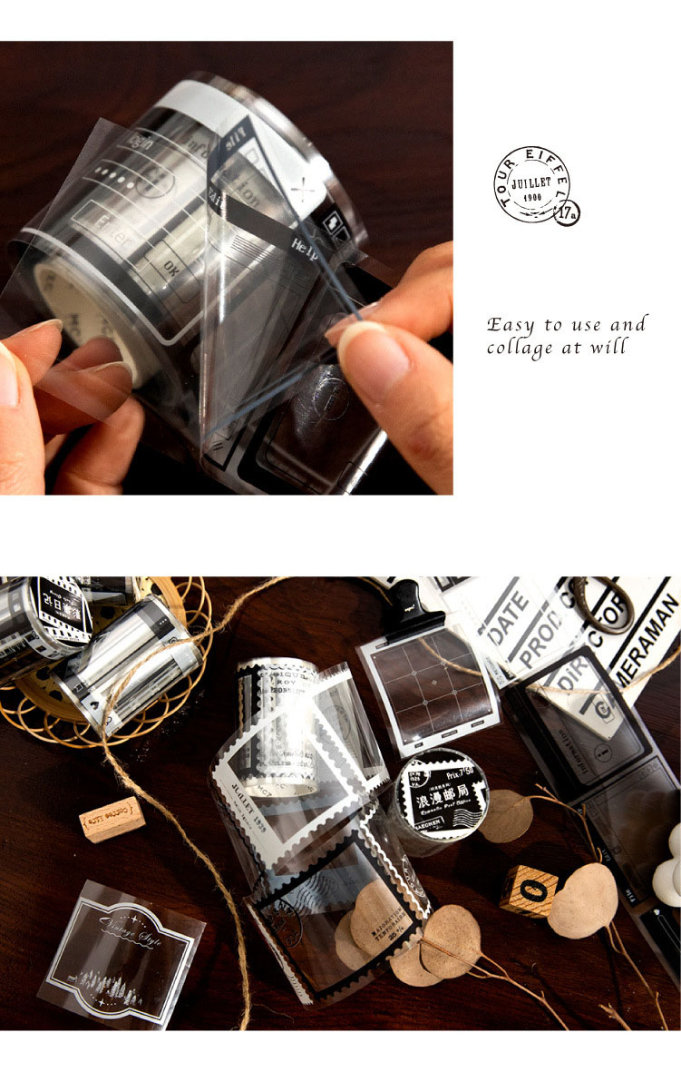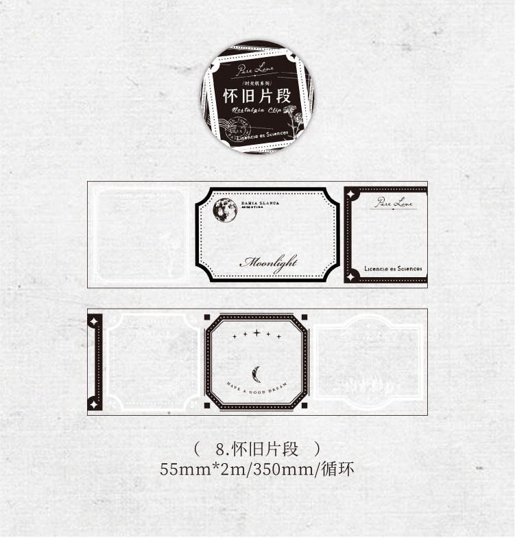 塩系文具 PETシール貼紙 手帳素材 マスキングテープ アンティーク 幾何学ラベル 枠 55mm*2m
