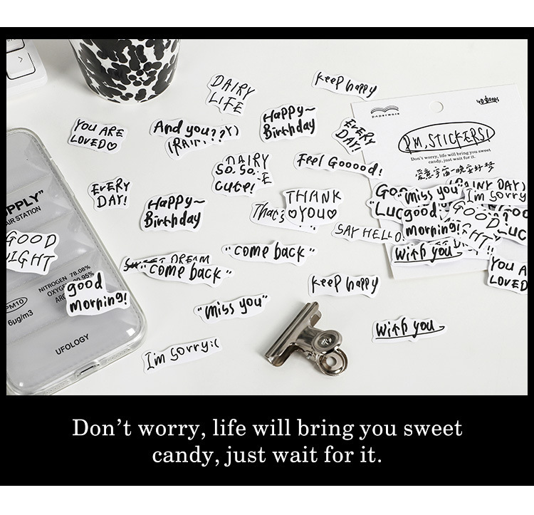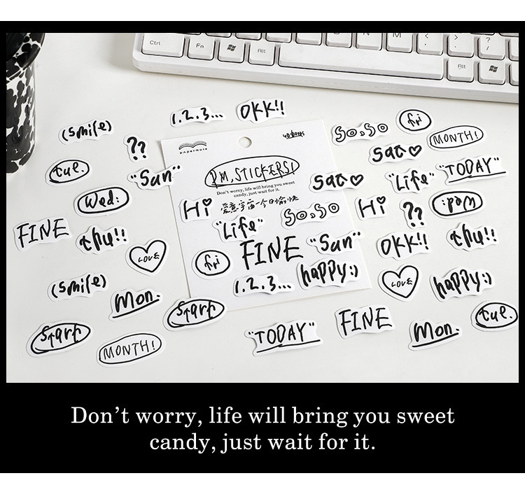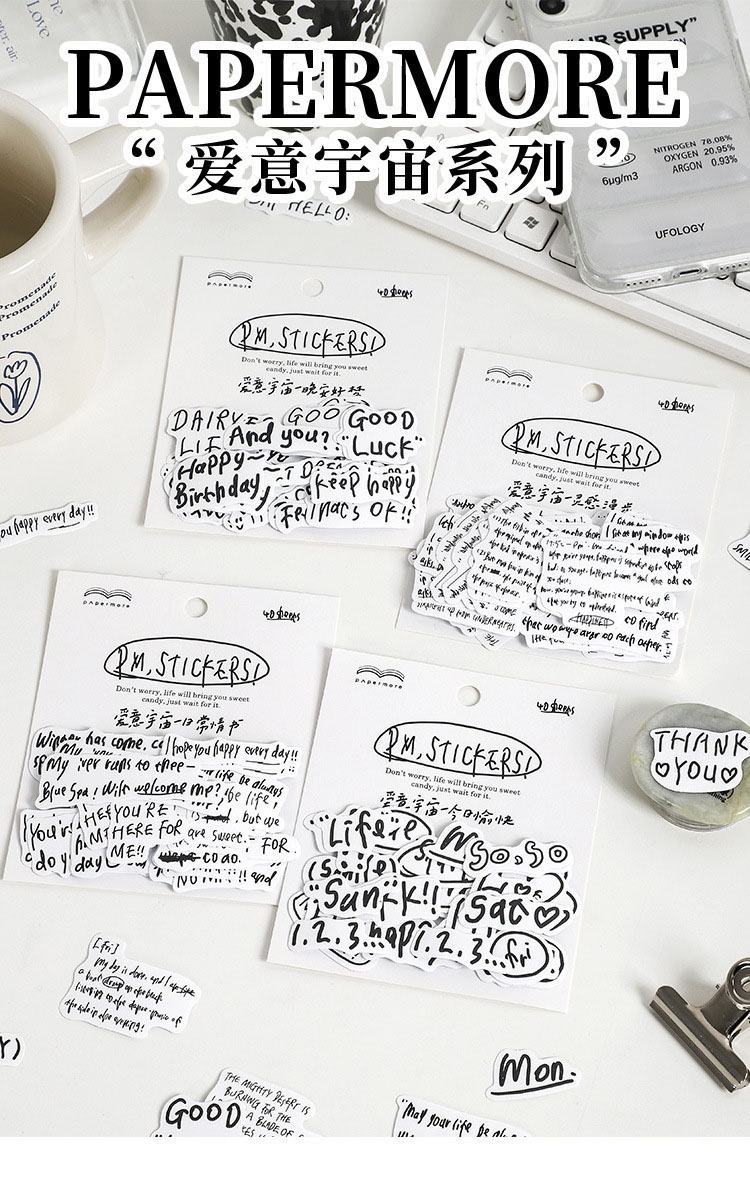 塩系文具 シール貼紙 手帳素材 封口貼 アンティーク イラスト 文字単語 花体字 幾何学ラベル 40枚入