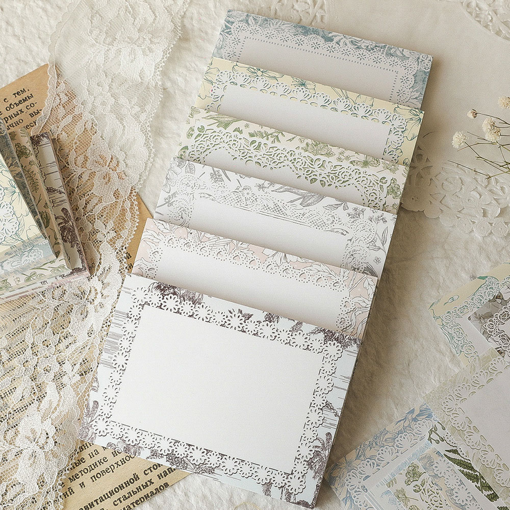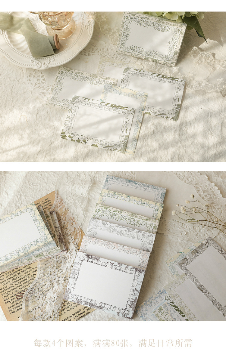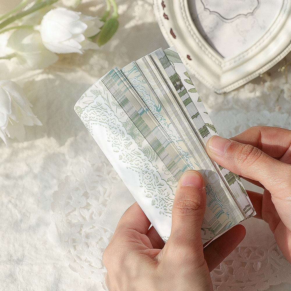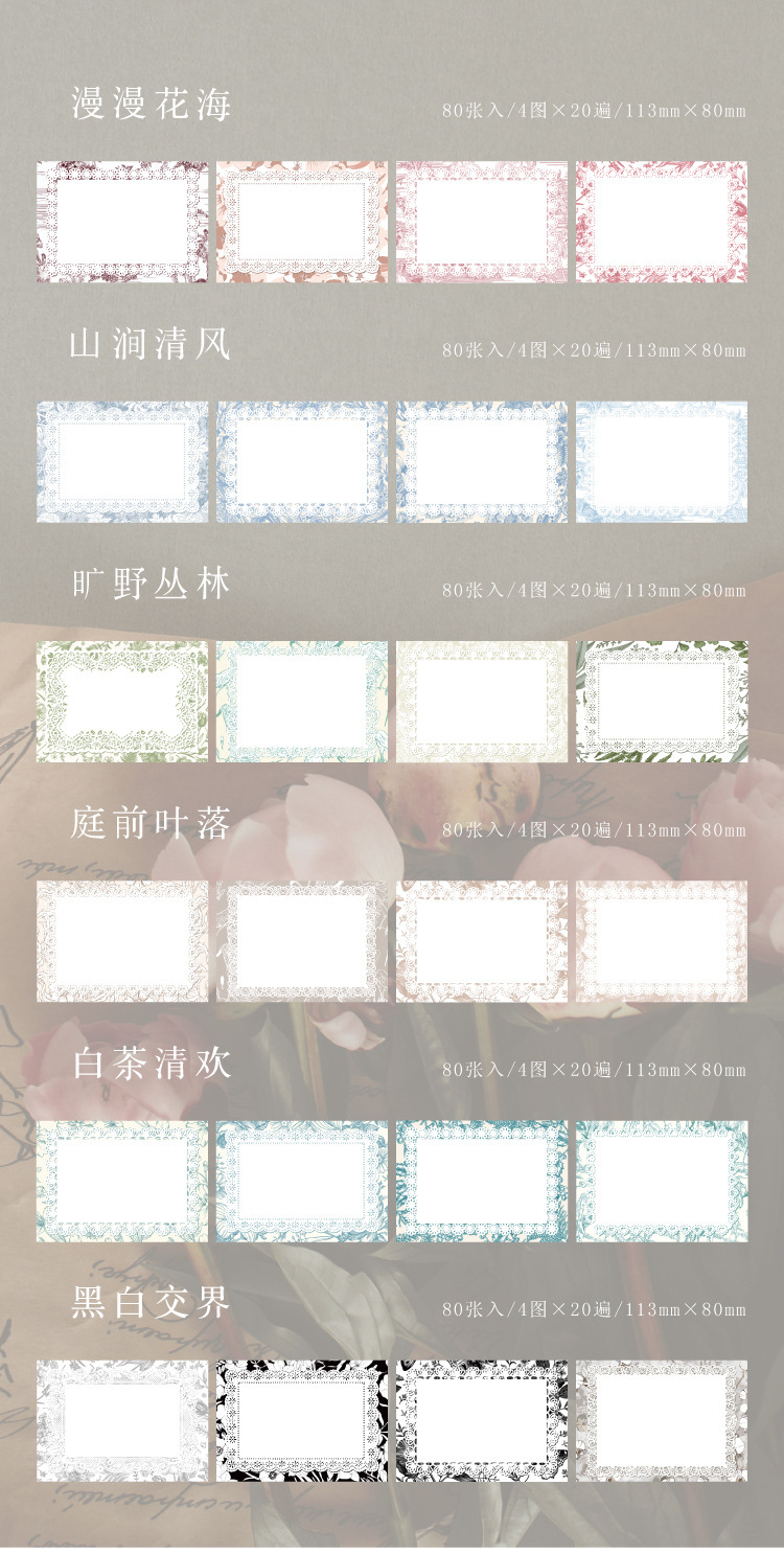 文具 素材紙メモ紙 手帳素材 始業 アンティーク 春新作 植物花葉 幾何学ラベル 花柄レース枠 80枚入