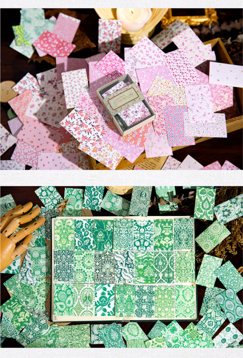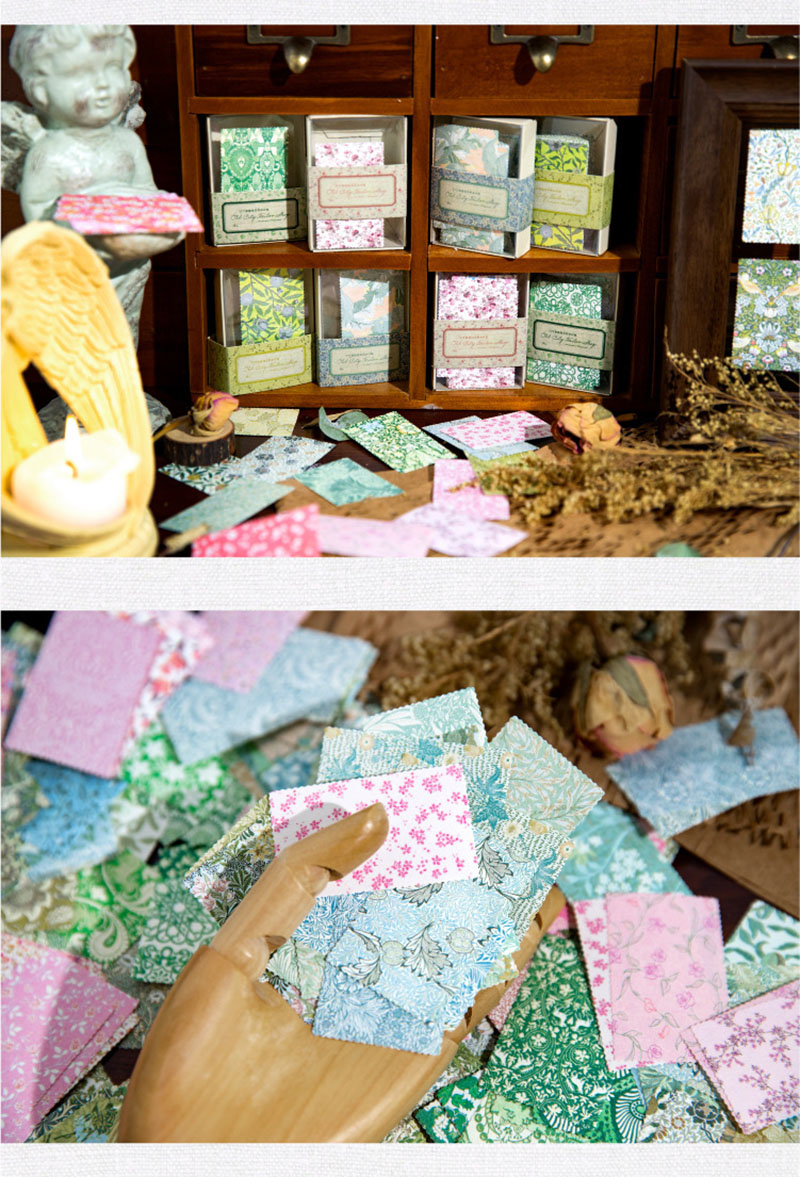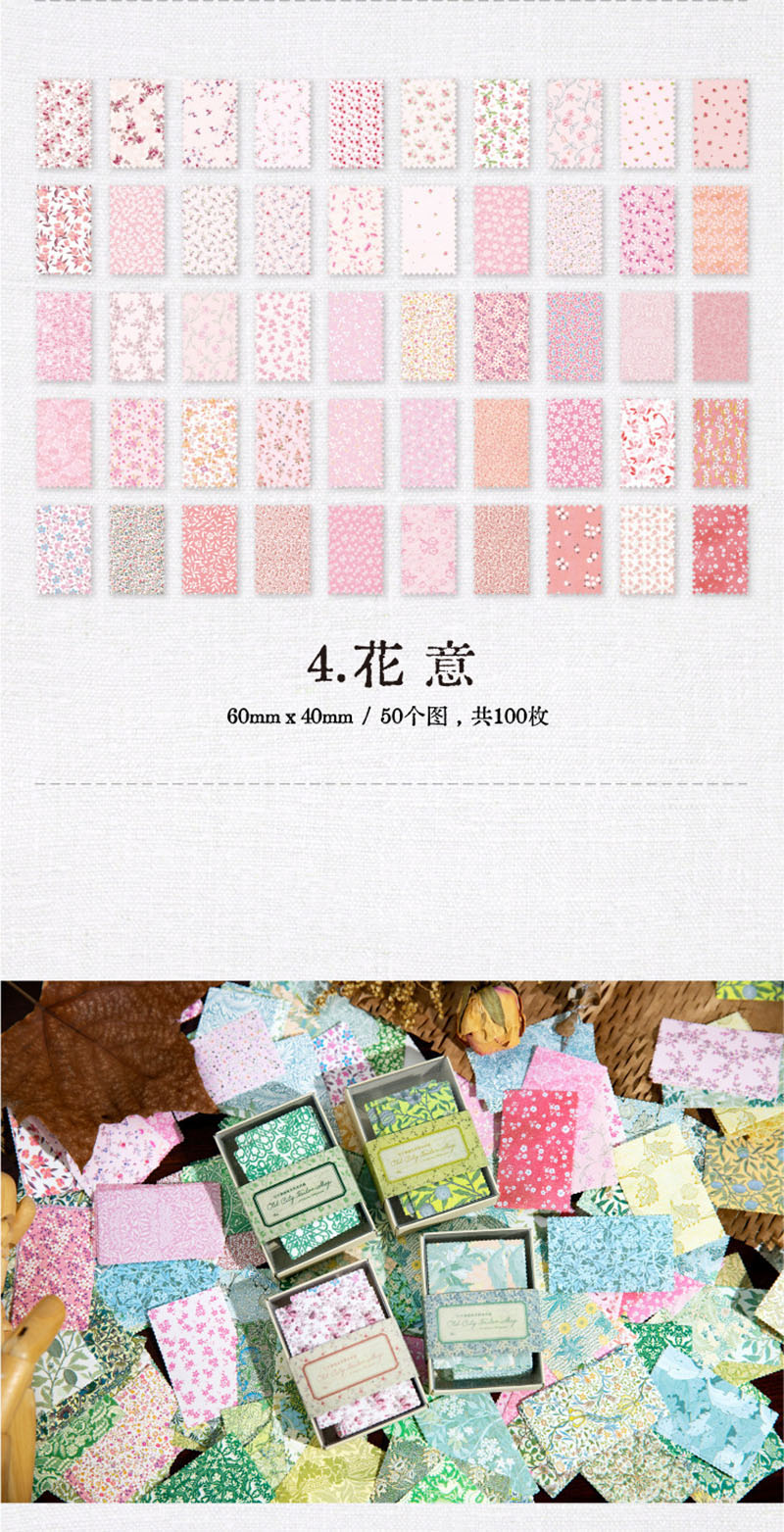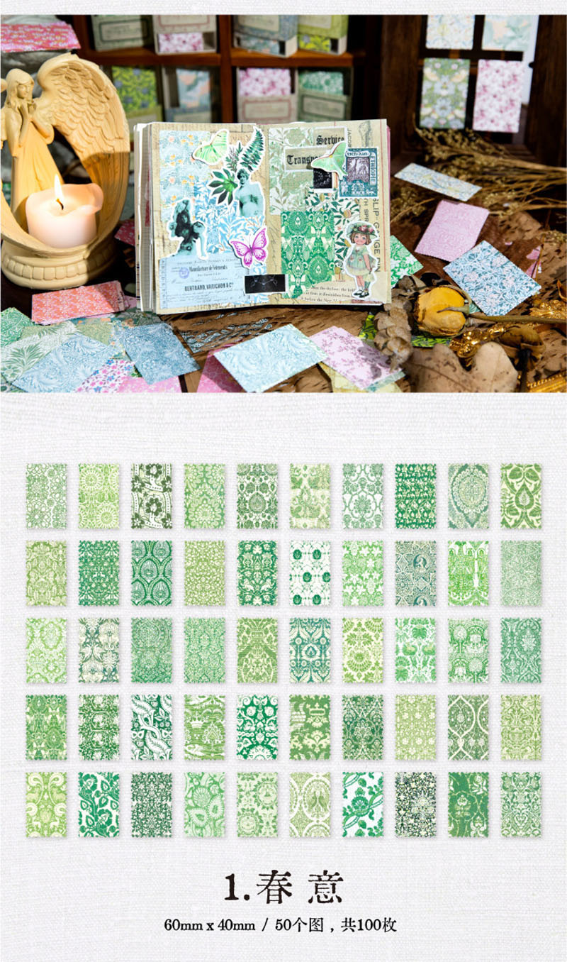 春新作 文具 素材紙メモ紙 手帳素材 アンティーク イラスト 小花柄 ラベル 植物花葉フラワー 100枚入