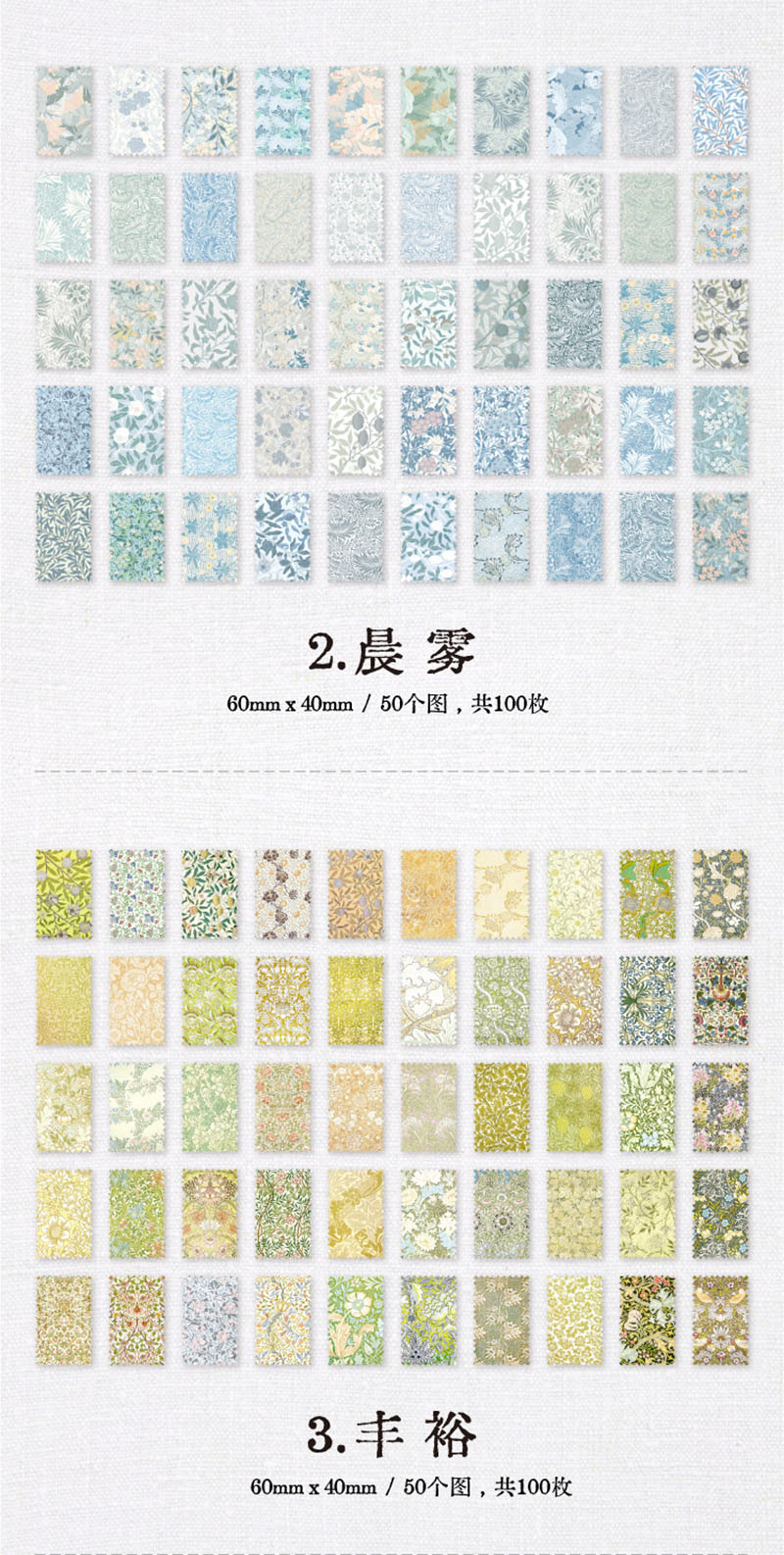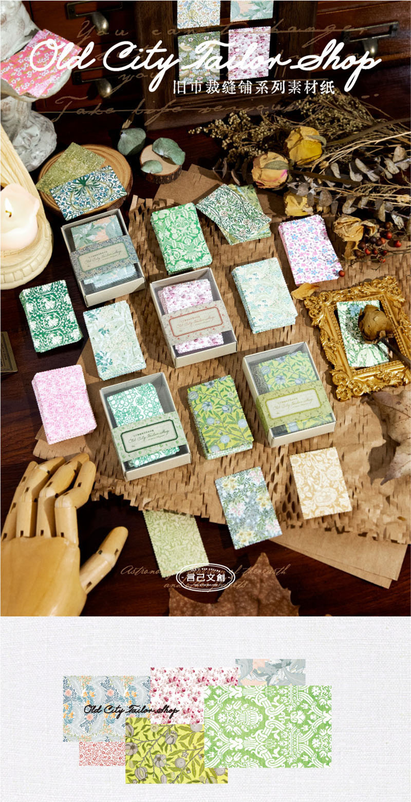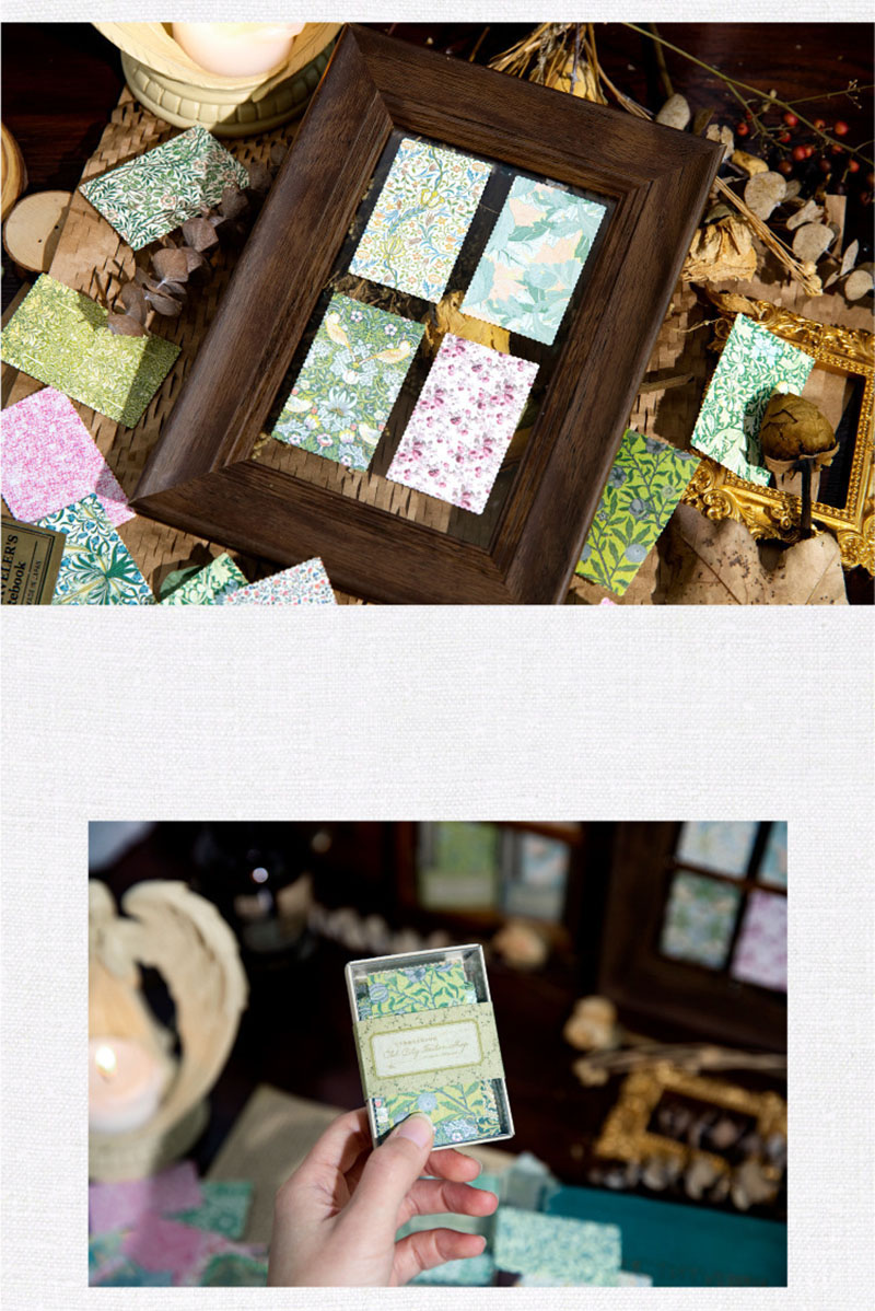 春新作 文具 素材紙メモ紙 手帳素材 アンティーク イラスト 小花柄 ラベル 植物花葉フラワー 100枚入