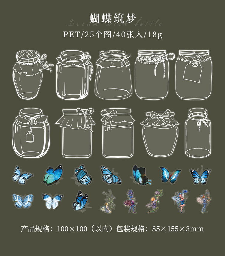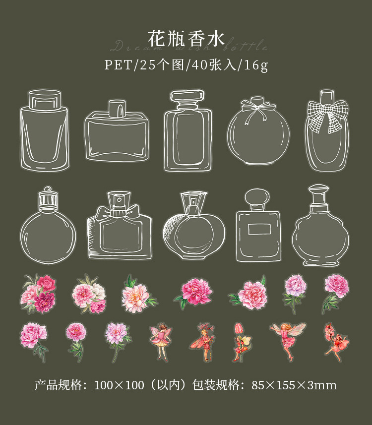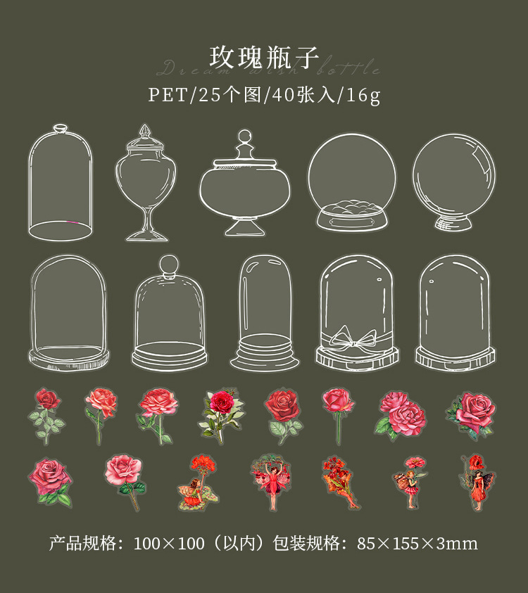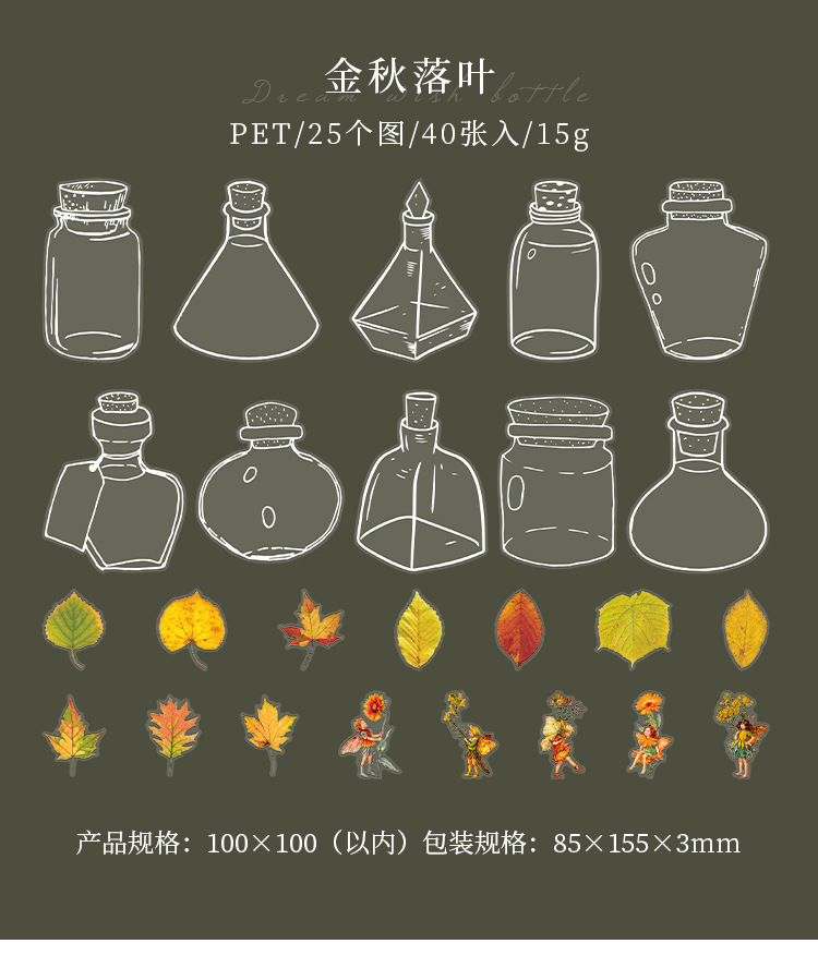 現在カテゴリ:全て商品 > 文具 PETシール貼紙 封口貼 アンティーク 手帳素材 植物花葉蝶キノコ 花の子精霊 ガラス瓶 イラスト 40枚入