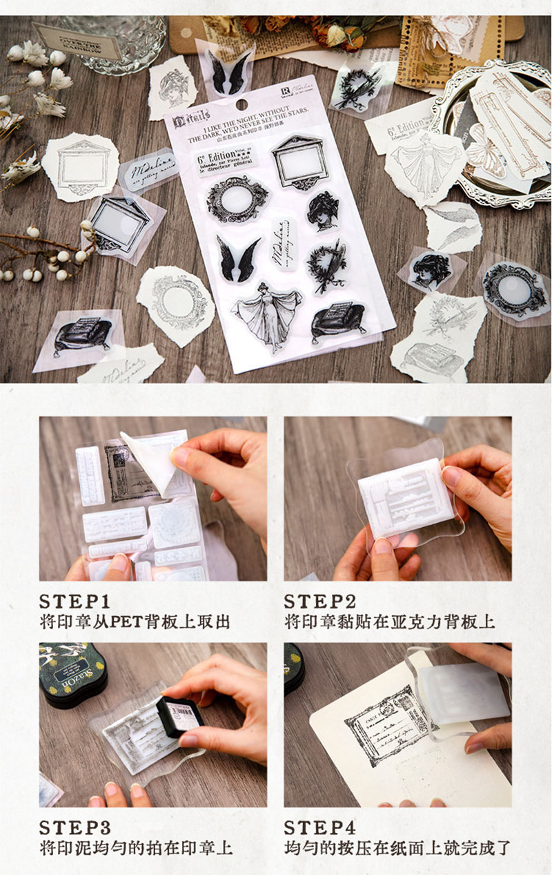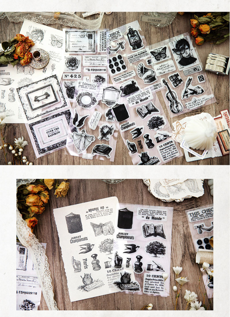 カフェ風 アルバムDIY ハンコ 手帳素材 印鑑 アンティーク 雑貨 人物 幾何学枠 花バタフライ