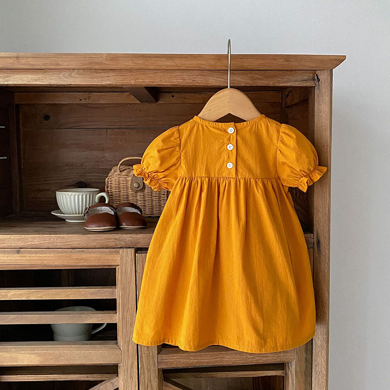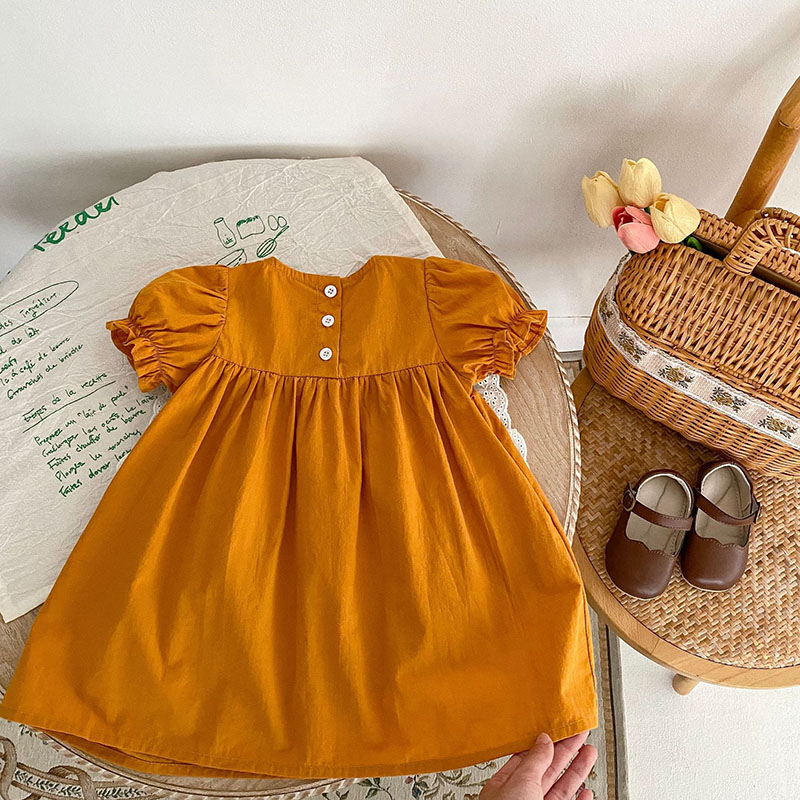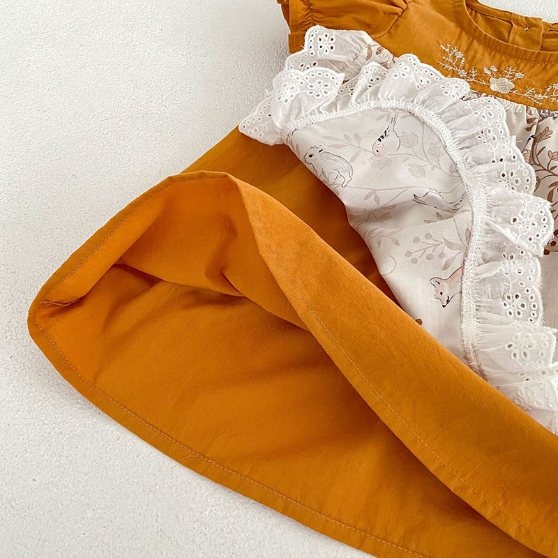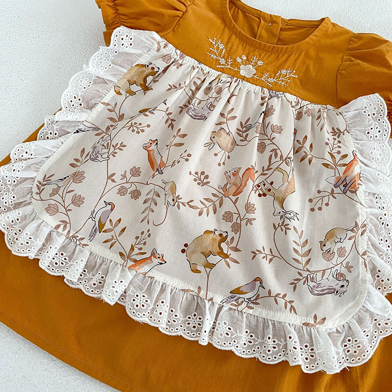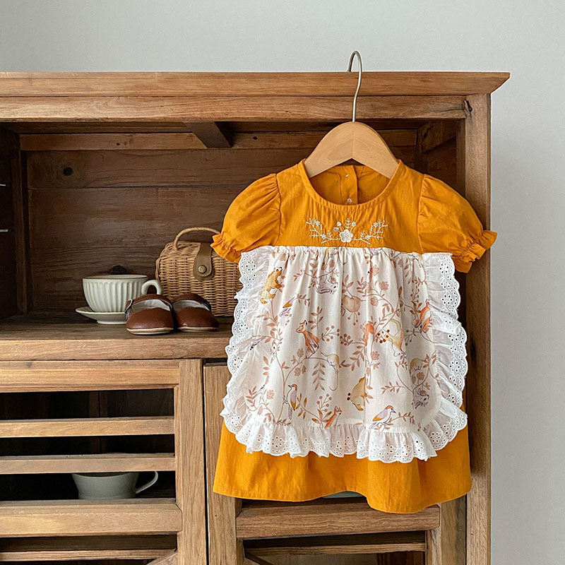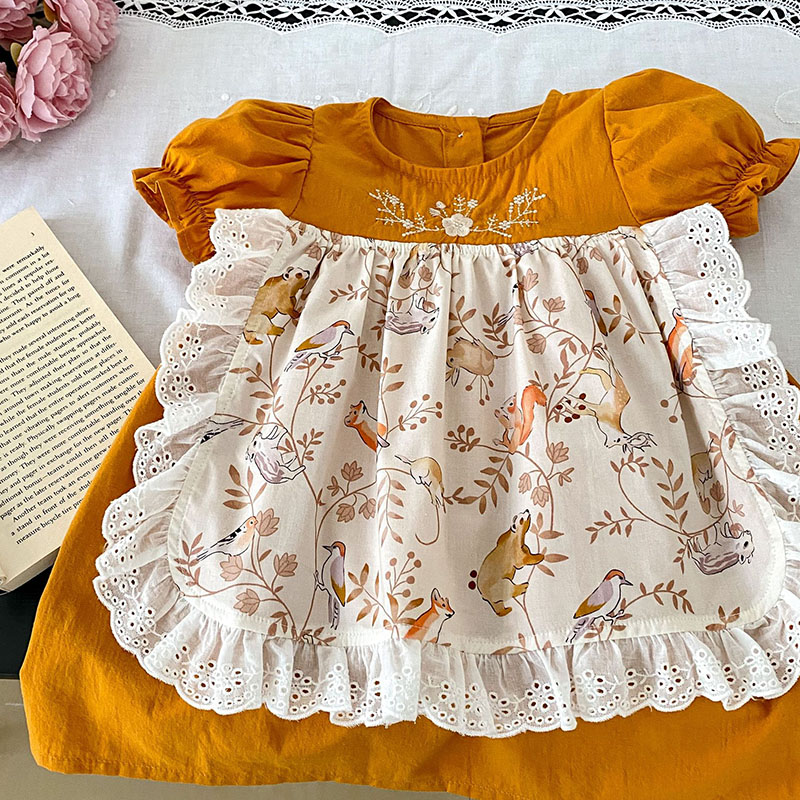 夏新作 ベビードレス ガールズ 花柄刺繍 アニマル フリル ワンピース ハーフスリーブワンピ 73-120