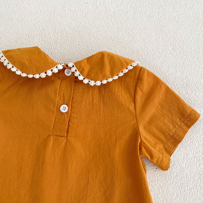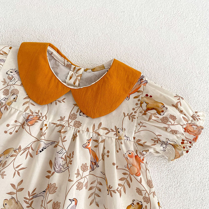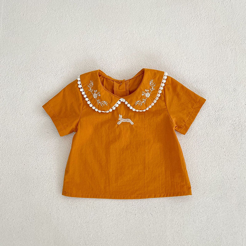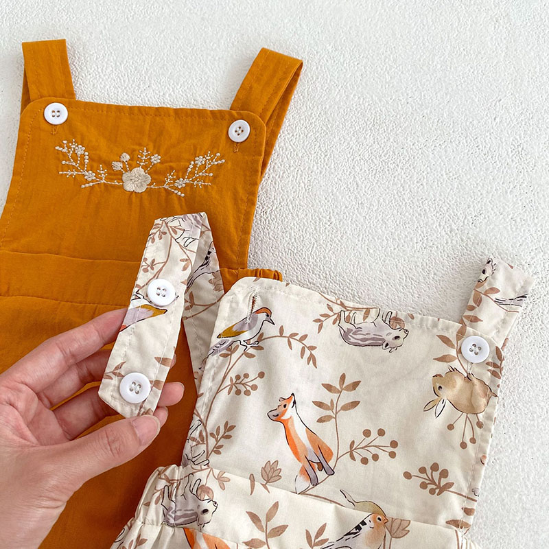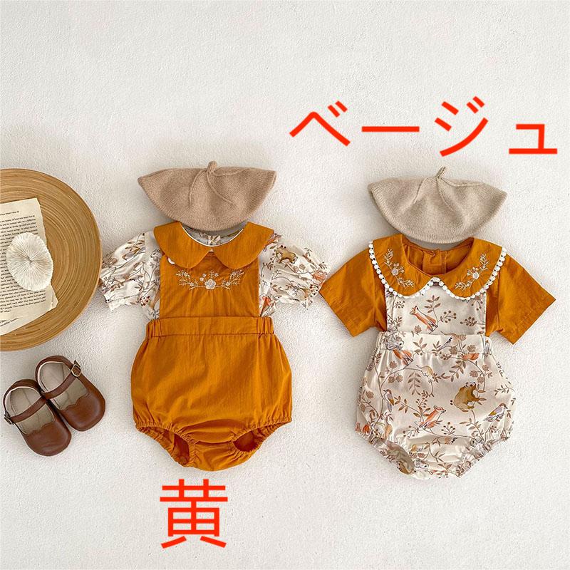 夏新作 ガール 吊りズボン サロペット 小花柄 刺繍 ウサギ熊 ブラウス 半袖シャツ+パンツ 66-100