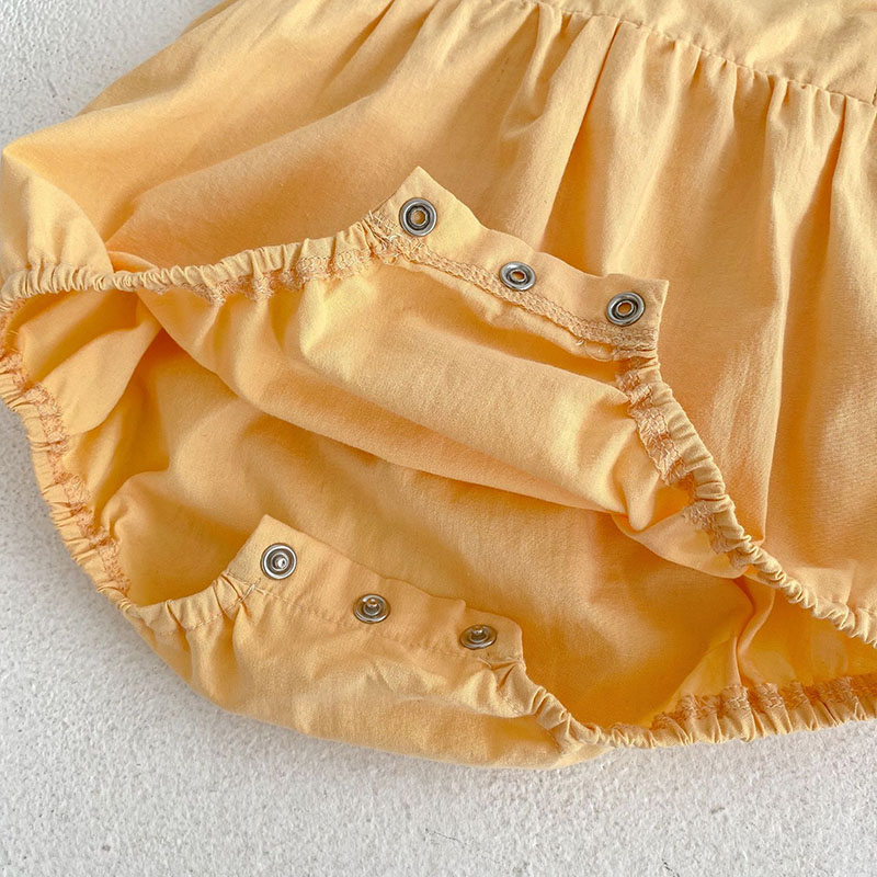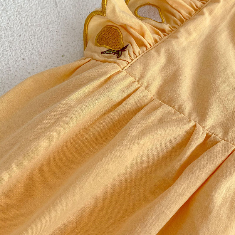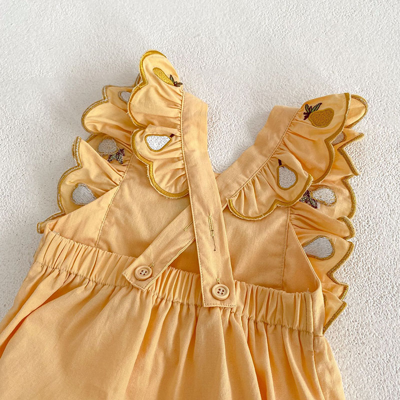 夏新作 ベビー ガールズ 連体服 梨刺繍 サロペット フリル ノースリープ ロンパース カバーオール 66-90