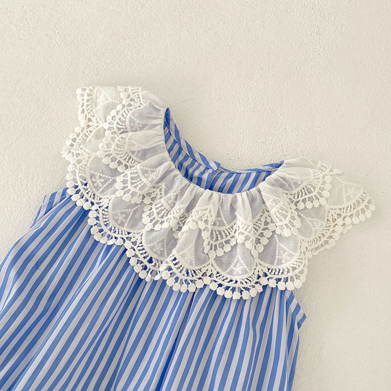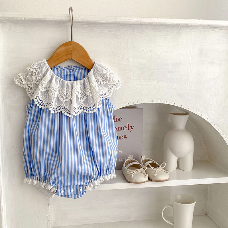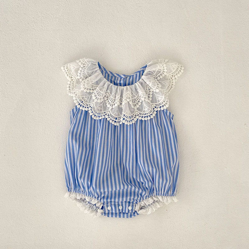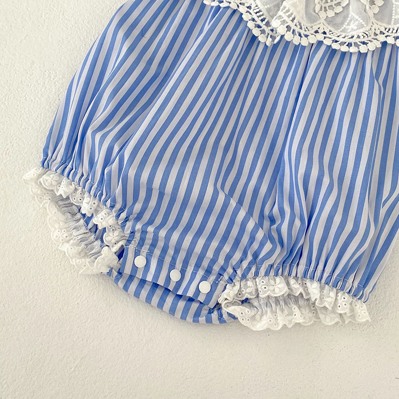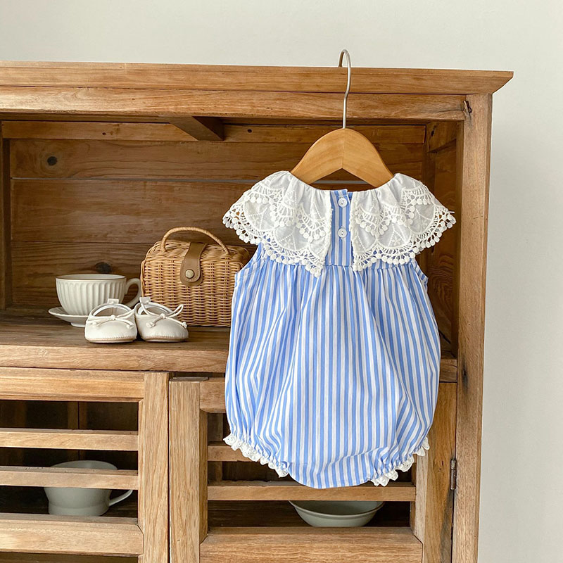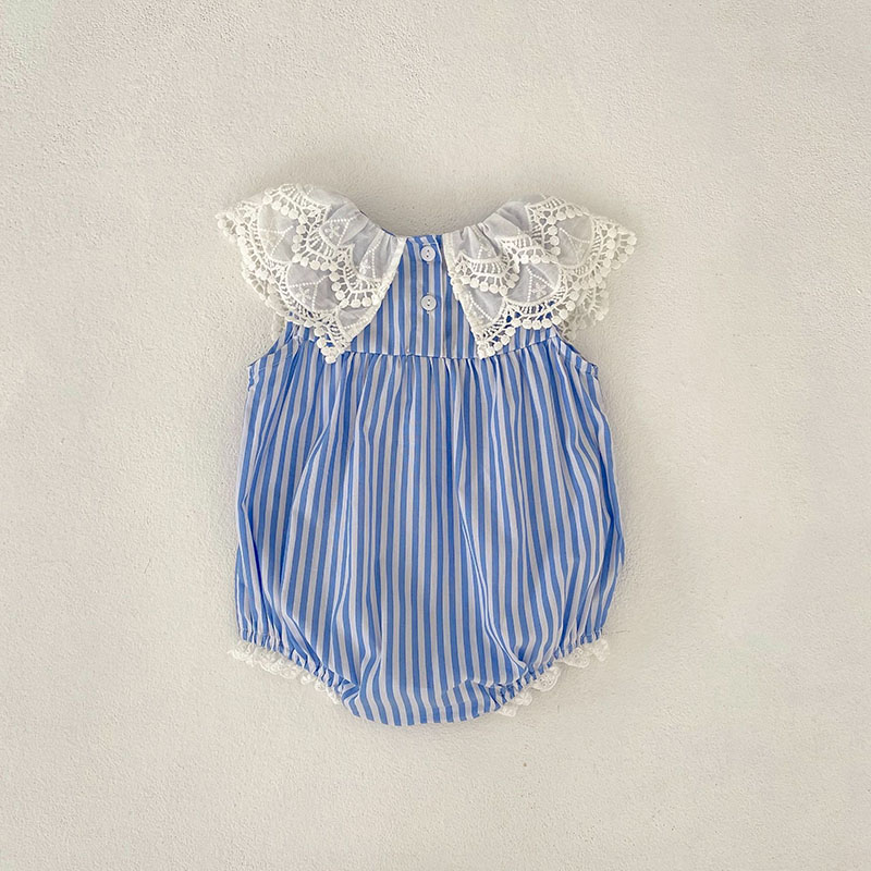 夏新作 ベビー ガールズ 連体服 ストライプ柄 フリル ノースリープ ロンパース カバーオール 66-90