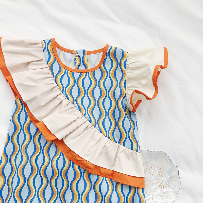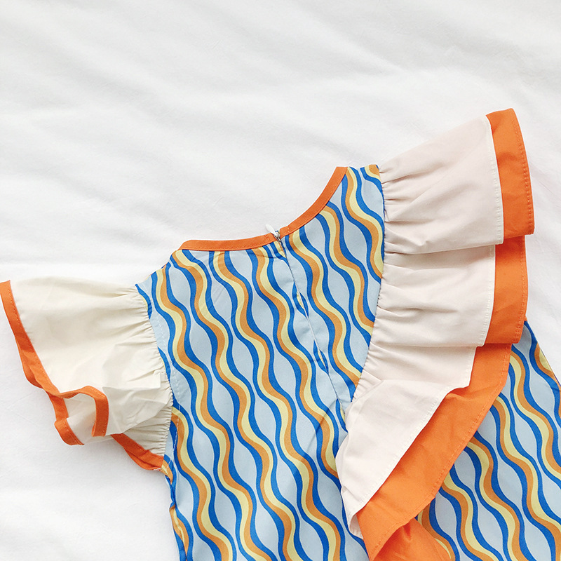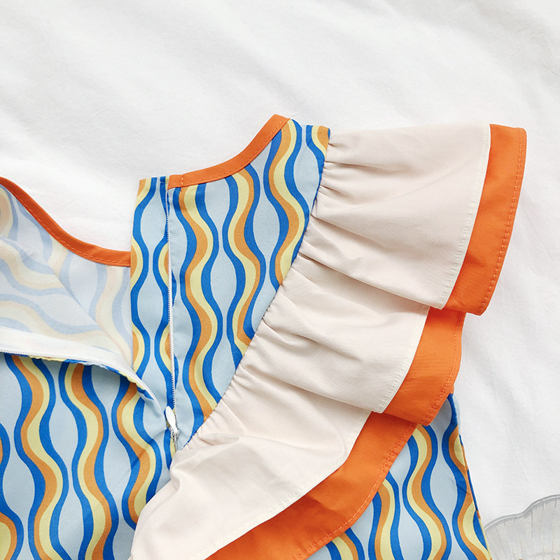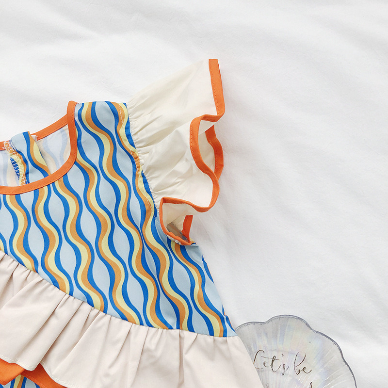 カジュアル ガールズ キッズ フリル ストライプ柄 ポッププリント シフトドレス ワンピース ワンピ 90-140