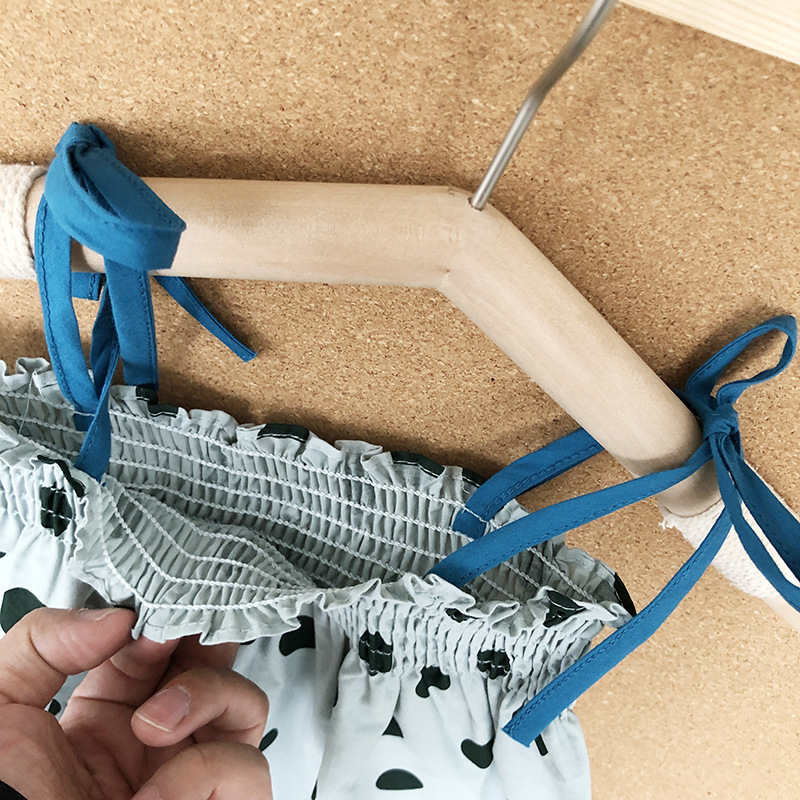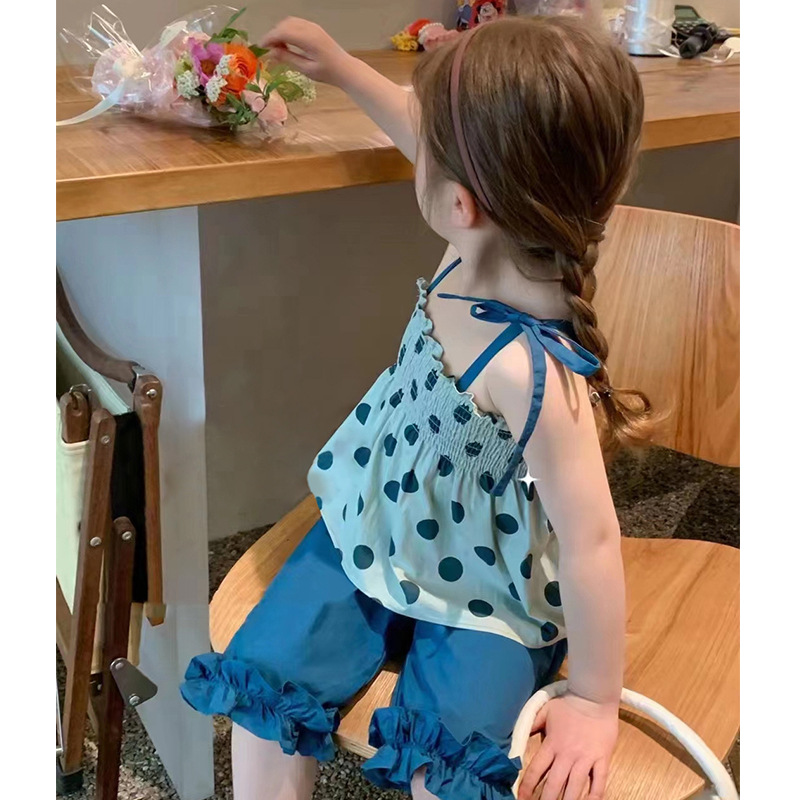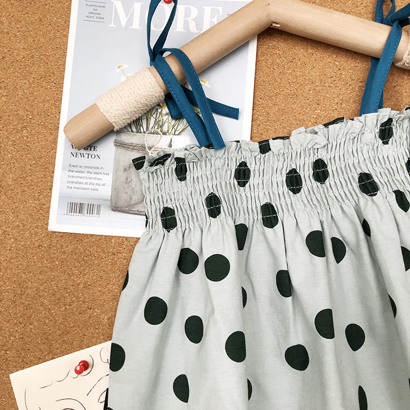 サマー ガールズ ドット柄 レースアップ ワイドパンツ ノースリープ キャミソール+パンツ 90-140