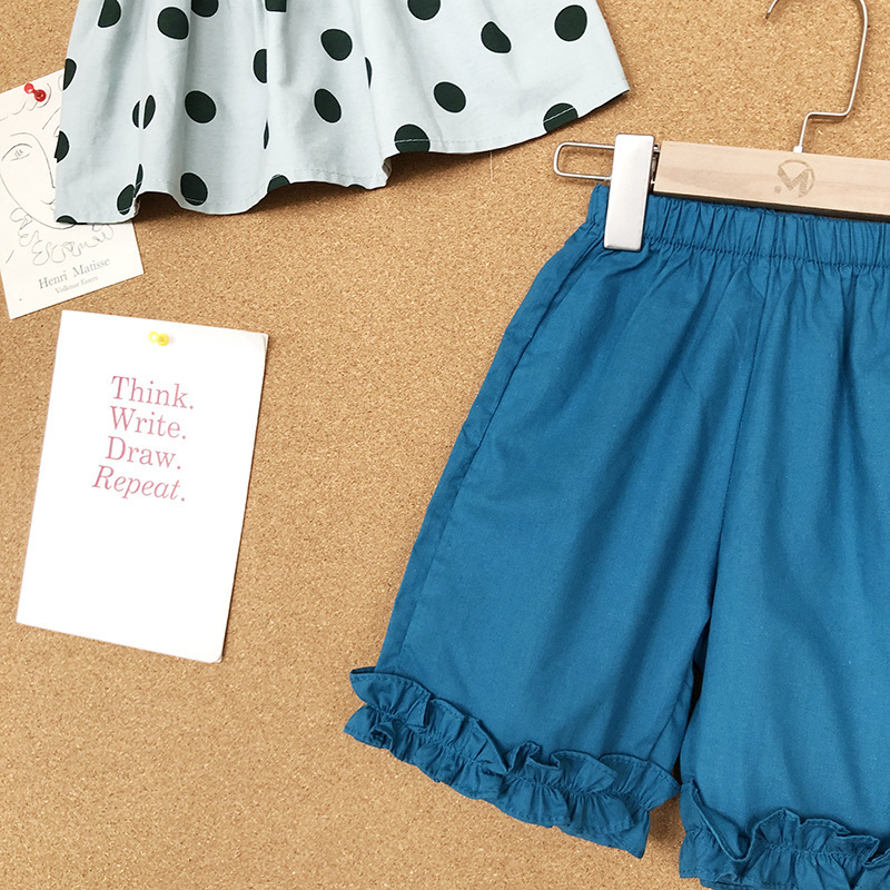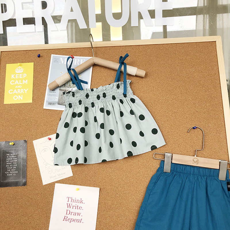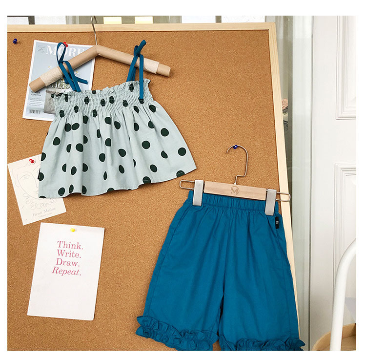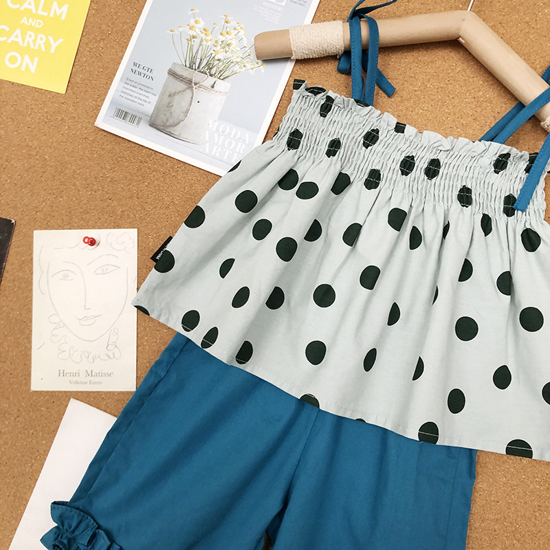 現在カテゴリ:全て商品 > サマー ガールズ ドット柄 レースアップ ワイドパンツ ノースリープ キャミソール+パンツ 90-140