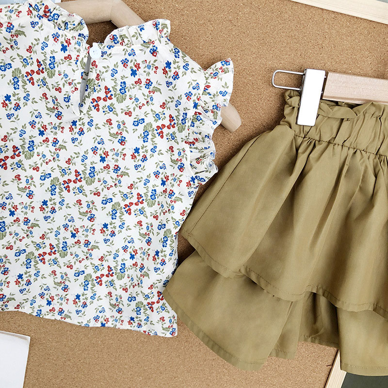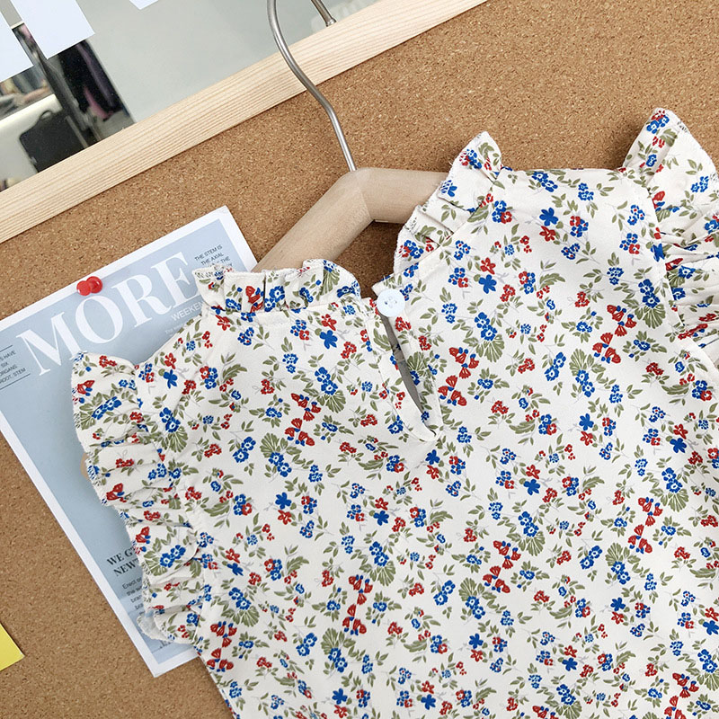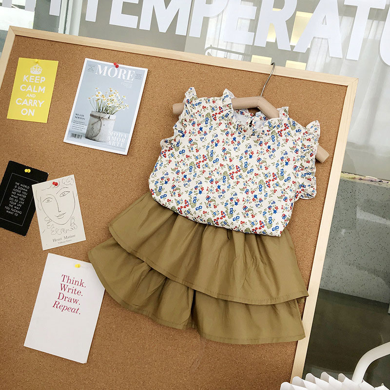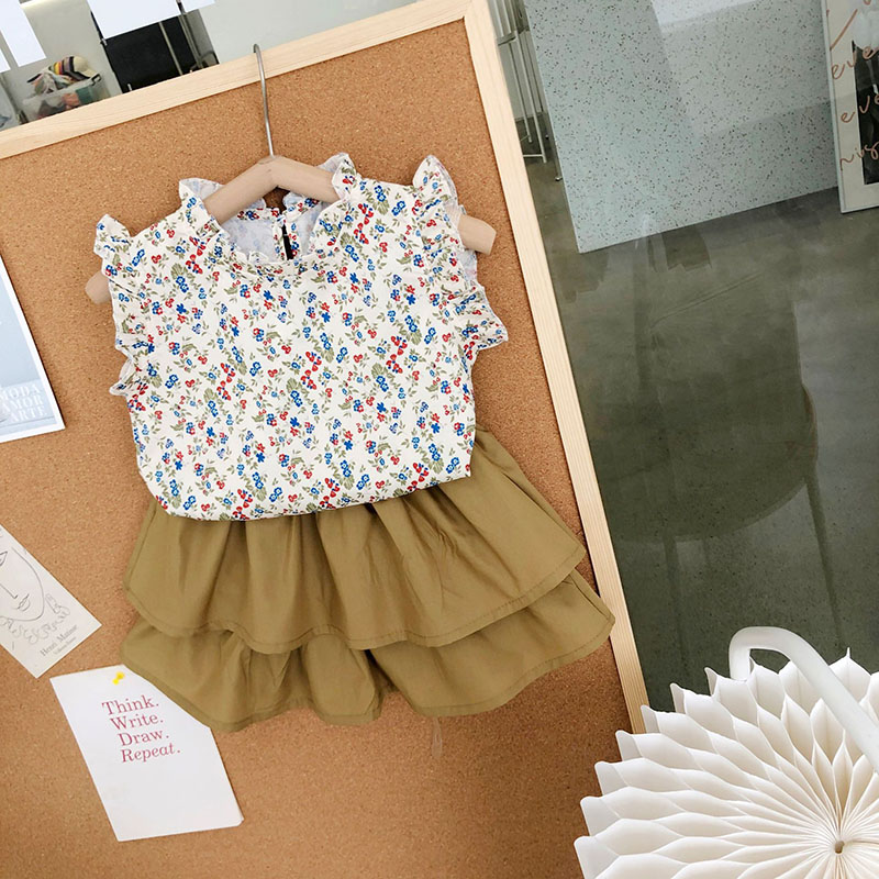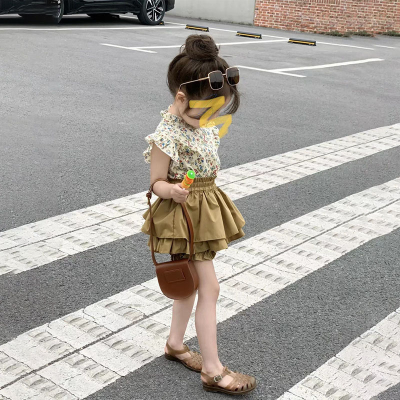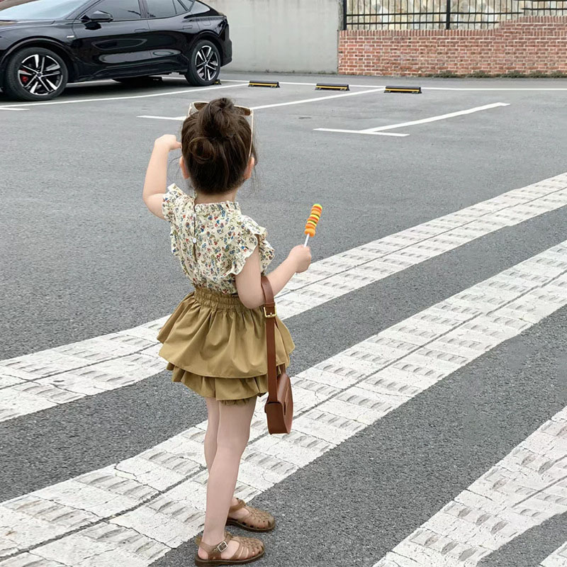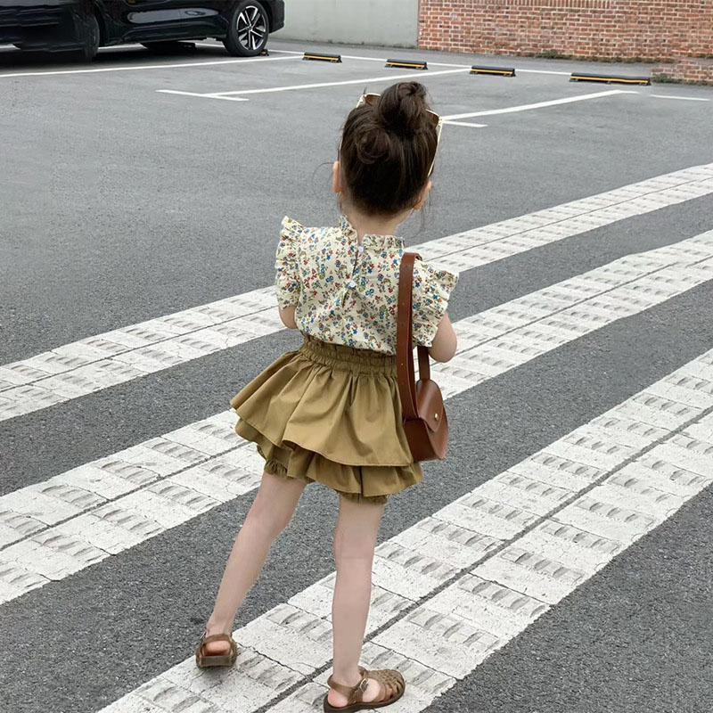サマー キッズ ガールズ ショートパンツ フリル ブラウス キュロット ボタニカル シャツ+パンツ 90-140