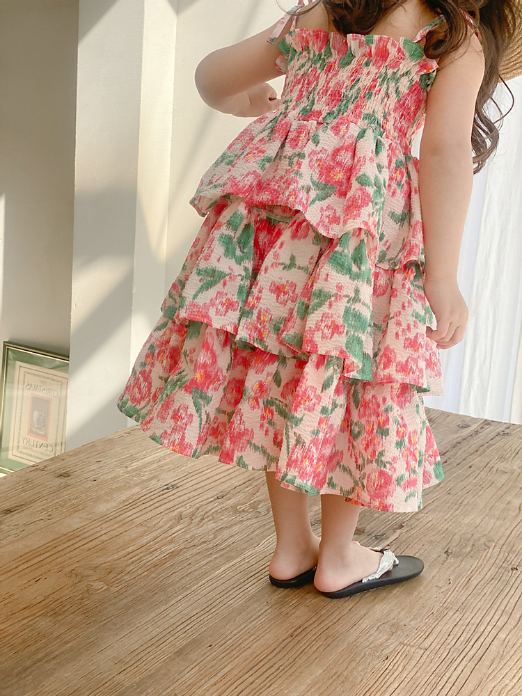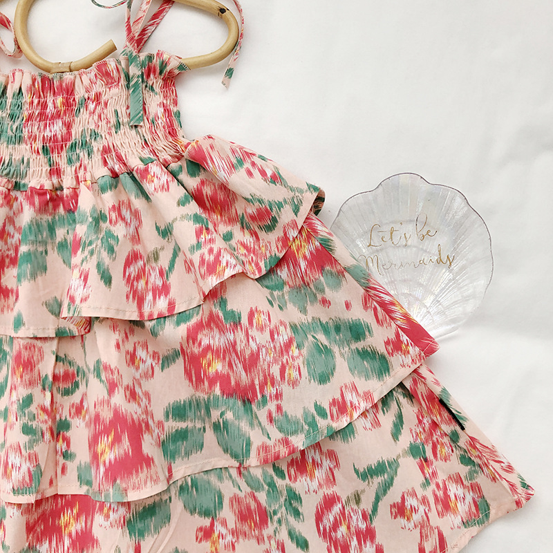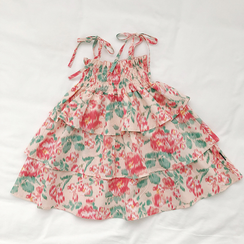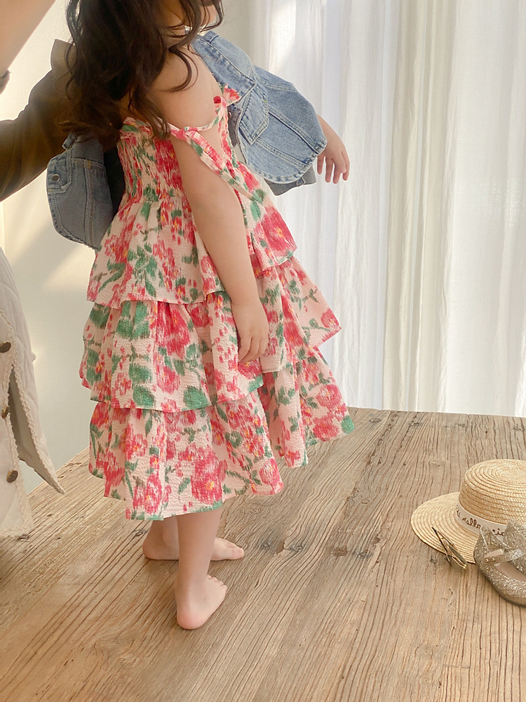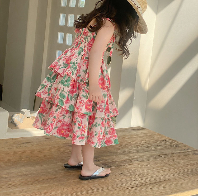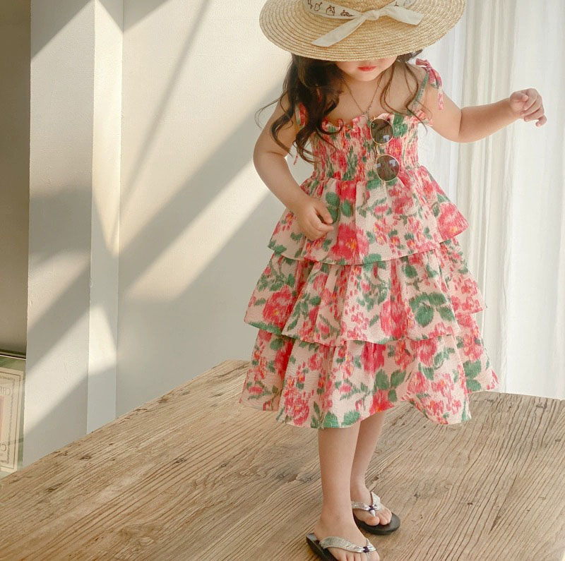 サマー ガールズ スリップドレス ワンピース ボタニカル ティアードスカート ノースリープ ワンピ 90-140