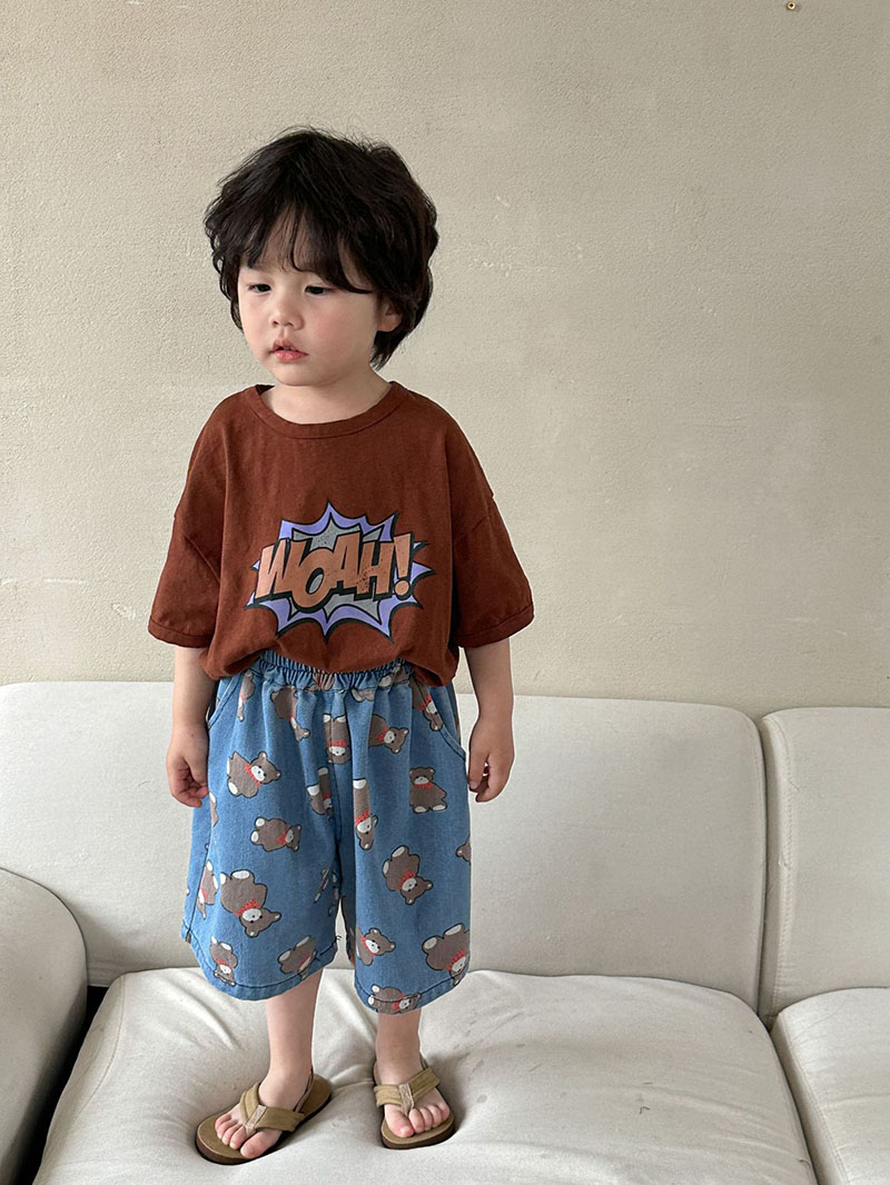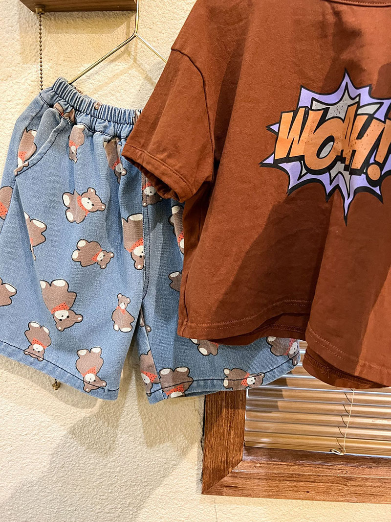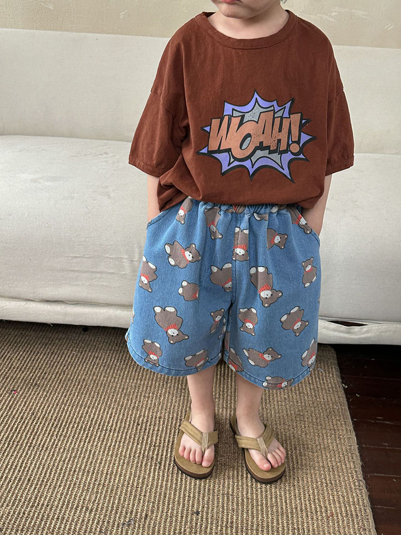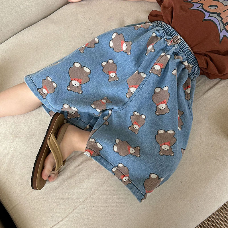サマー カジュアル キッズ デニムパンツ クマ クロップドパンツ ジーンズ ジーンズ ユニセックス 80-150