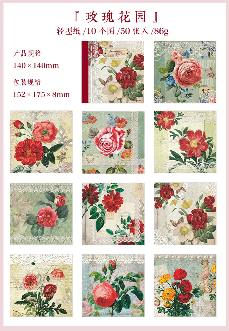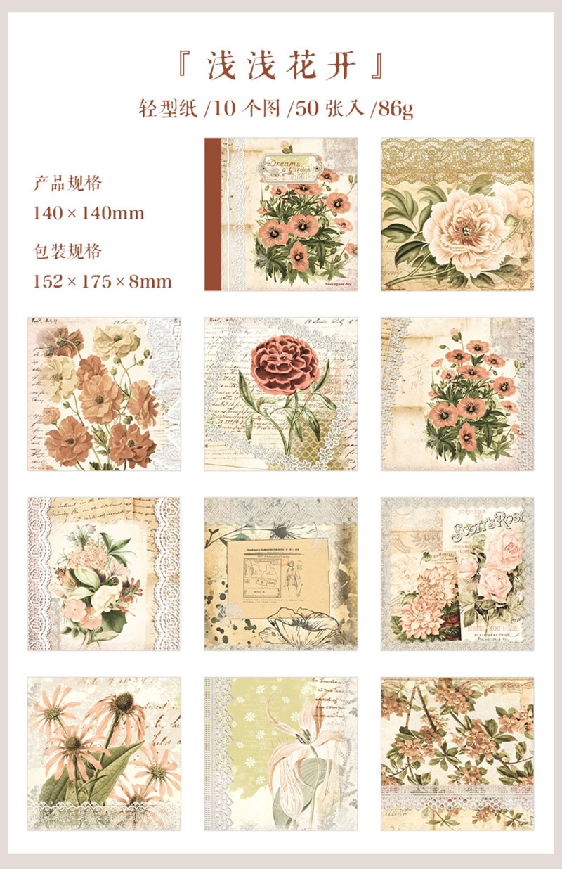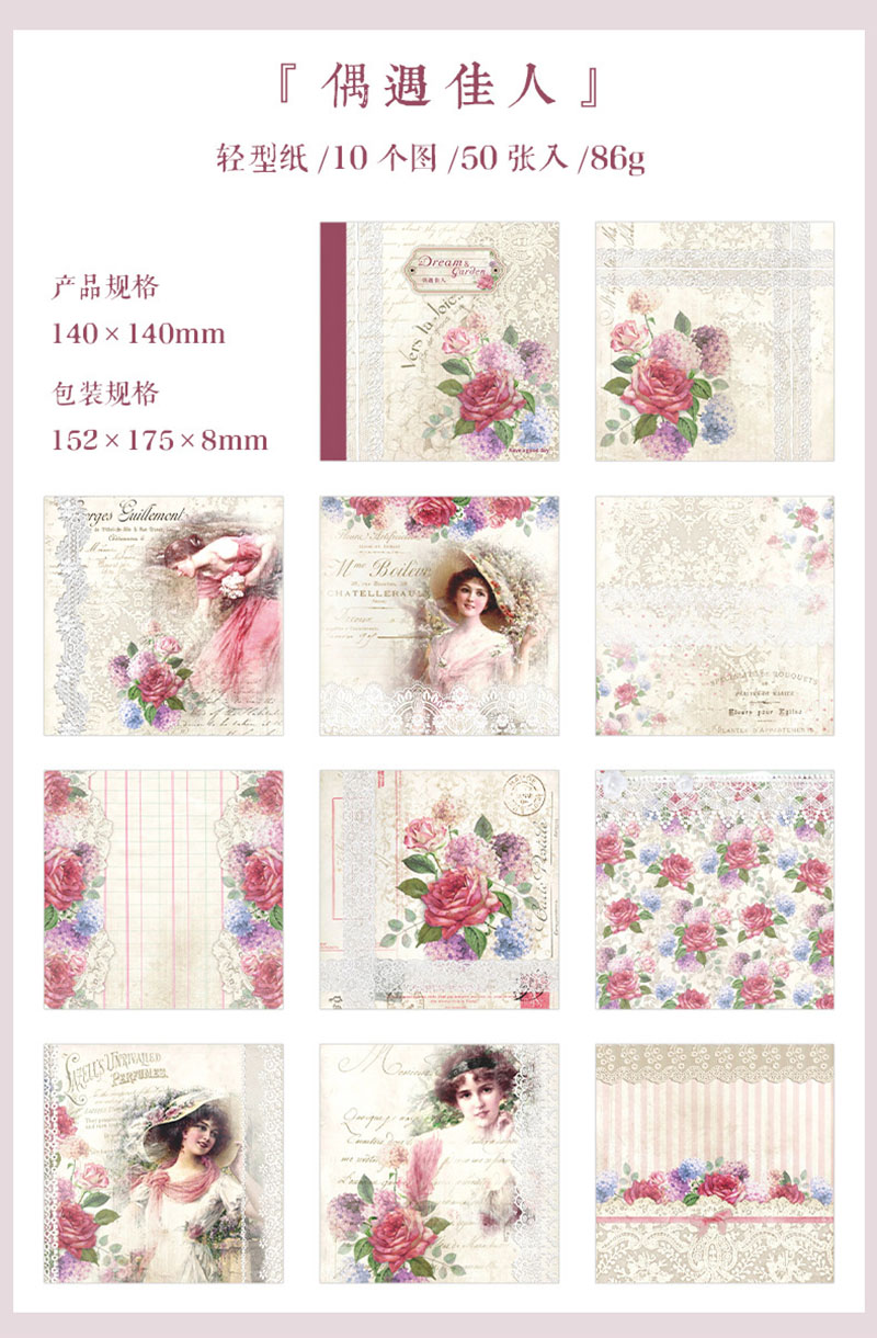 インテリア メモ紙 アンティーク レース バタフライ フラワー イラスト エンゼル 50枚入