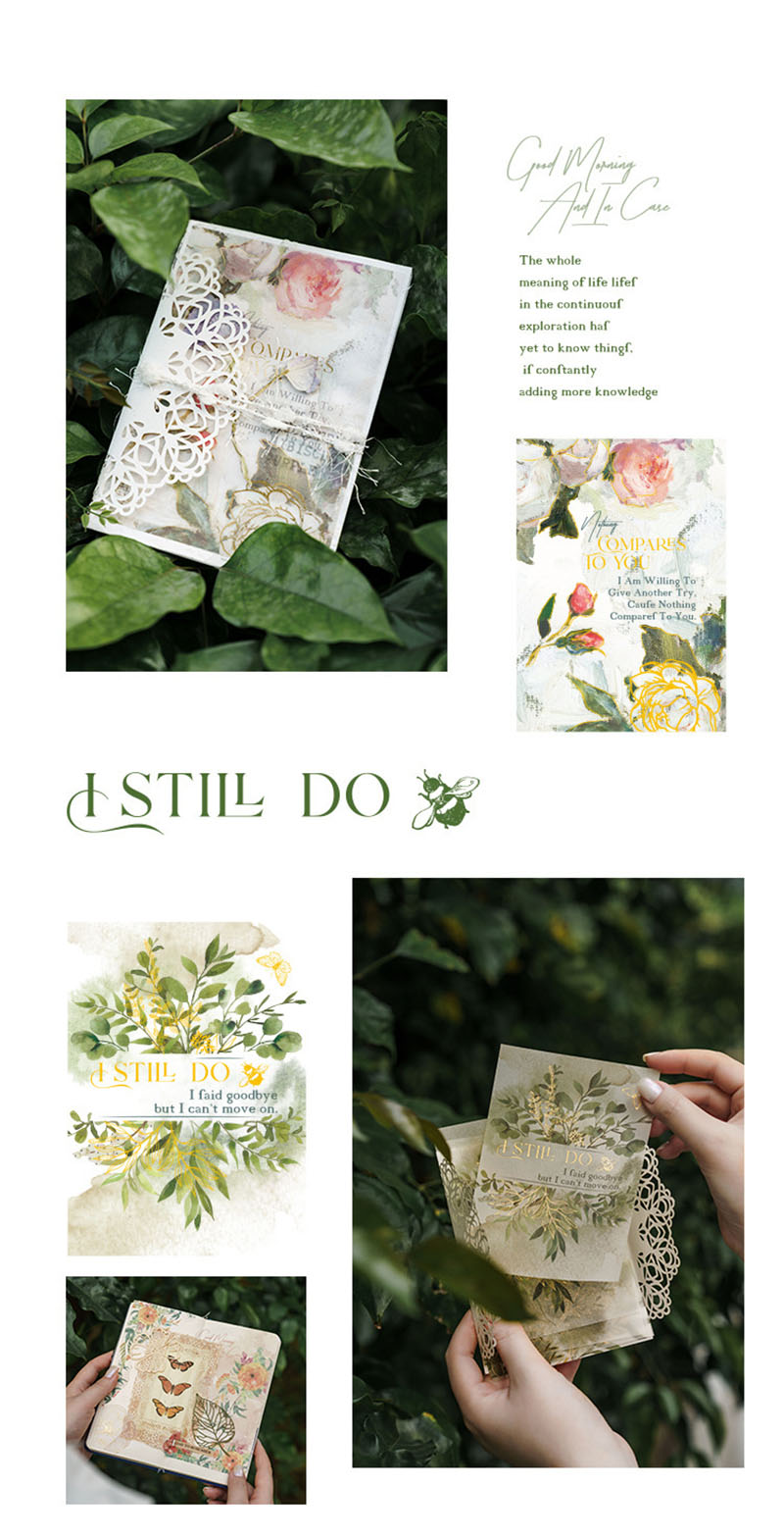 カフェ メッセージ ペーパー アンティーク メモ紙 ボタニカル サマー フラワー 葉 イラスト 10枚入