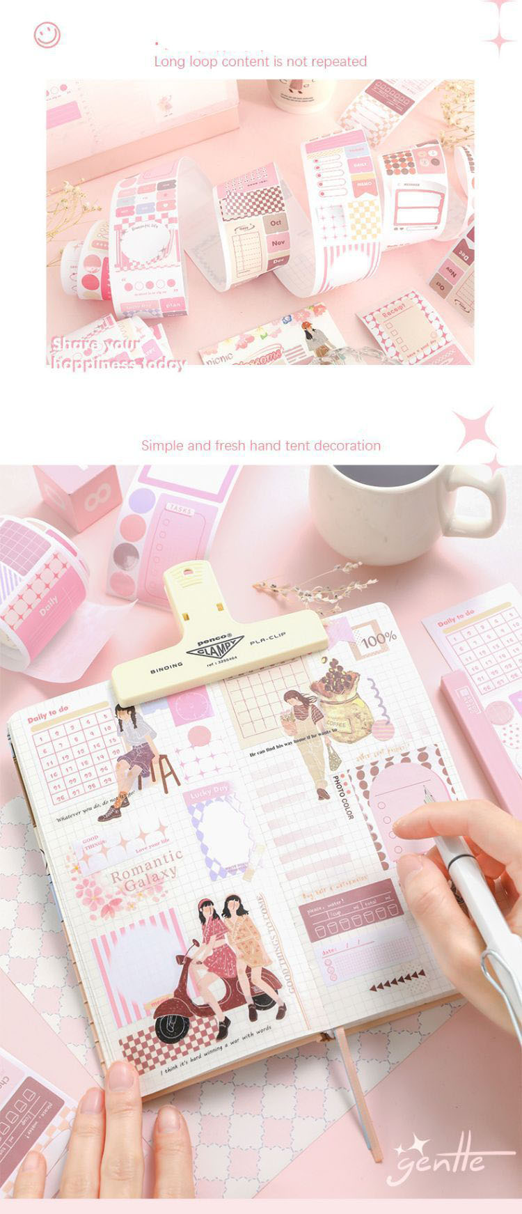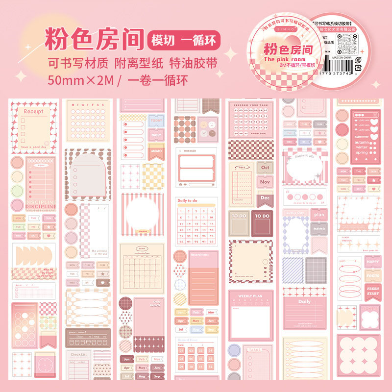 シール ステッカー マスキングテープ アンティーク ピンキーカラー ラベル ハート メモ紙 50mm*2m