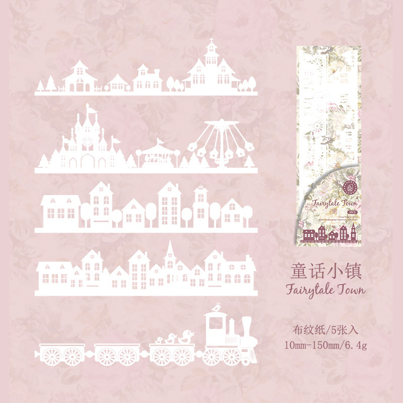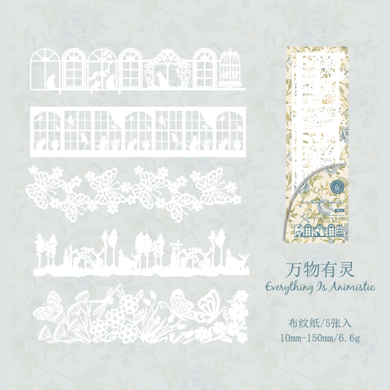 カフェ レースペーパー アンティーク フィルム バタフライ フラワー ストリート イラスト 5枚入