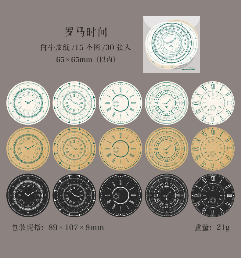 インテリア メモ紙 アンティーク クラシック ネコ 時計 ガイド イラスト フレーム ワク 30枚入