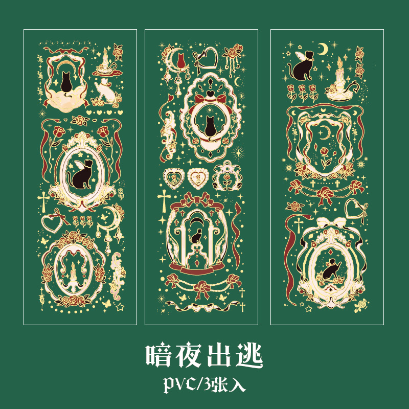 現在カテゴリ:全て商品 > PVCシール インテリア ステッカー リボン 幾何学 ゴシック 星月猫 ハート バタフライ クロス 3枚入