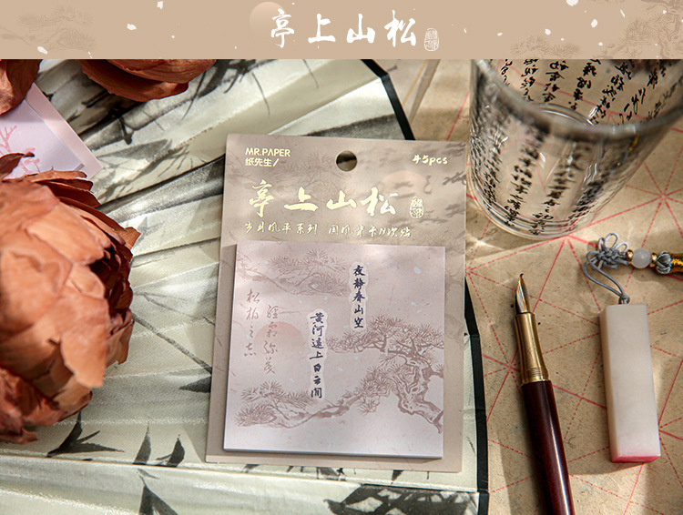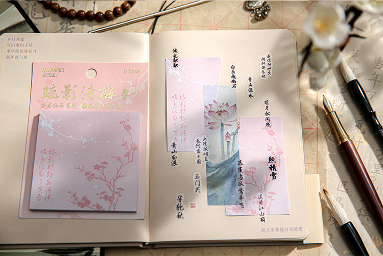 カフェ風 貼り付け付箋 素材紙メモ紙 ポストイット 中華風絵 アンティーク 45枚入