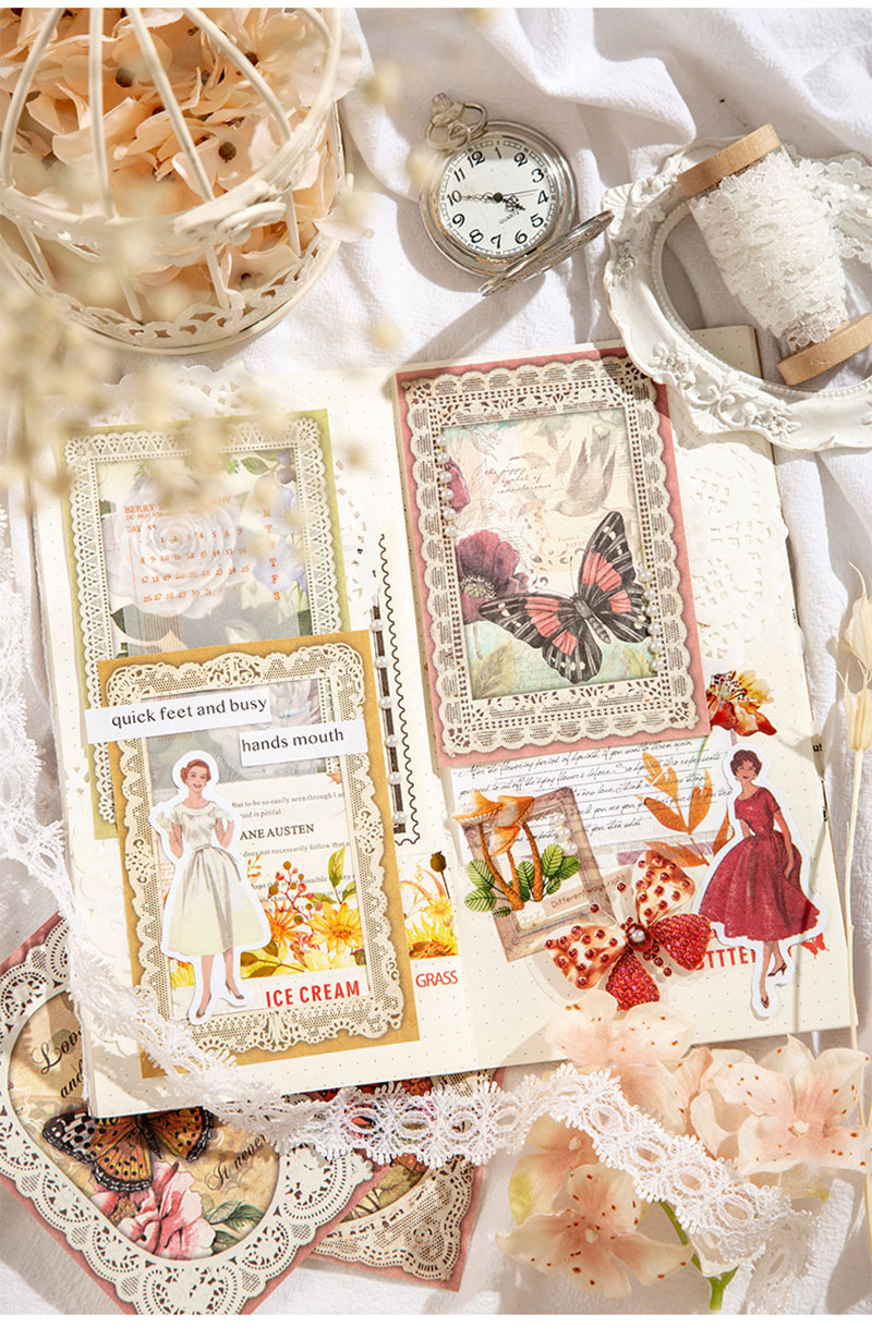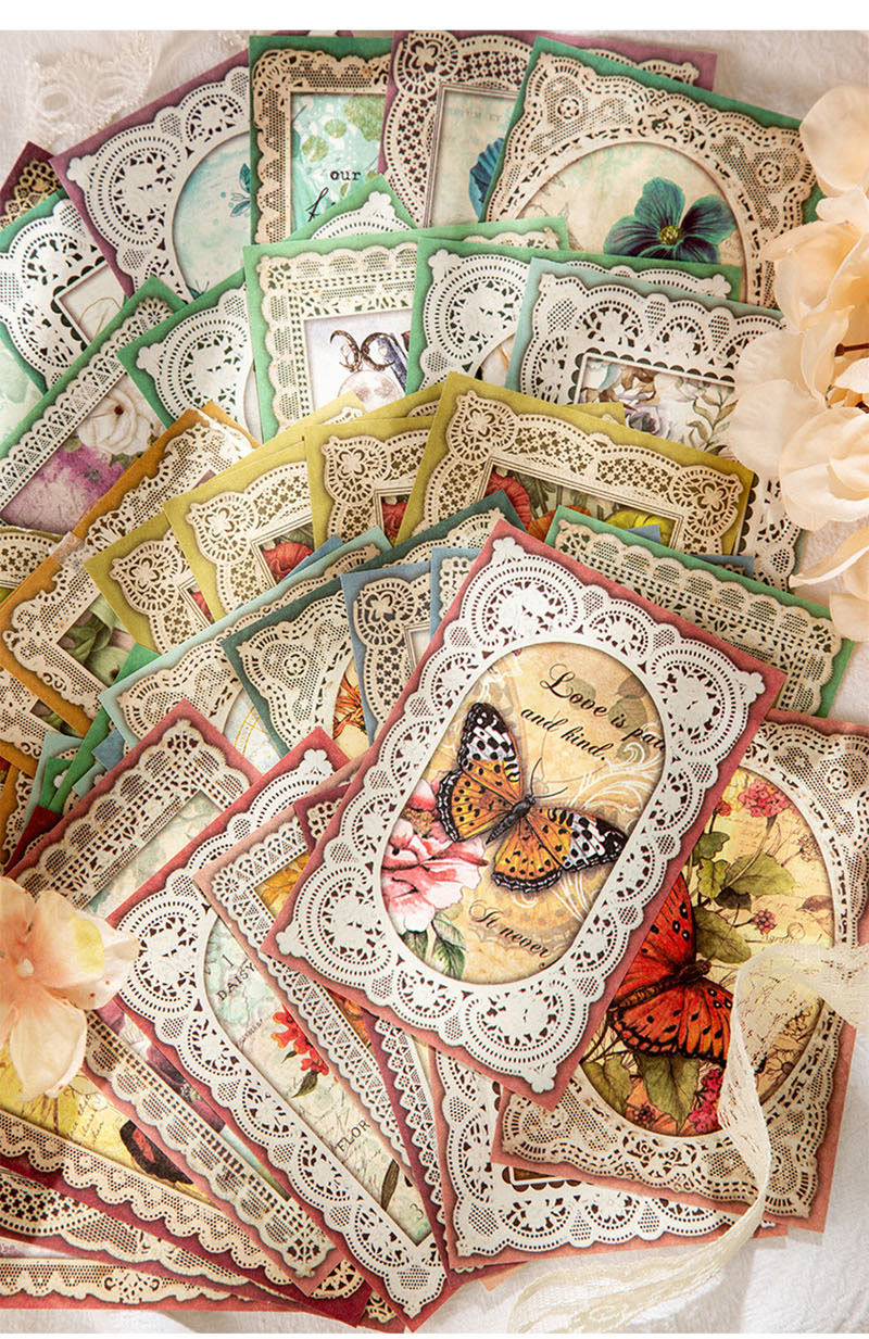 インテリア ペーパー 素材紙メモ紙 アンティーク ラベル 花の子 植物花 バタフライ イラスト 50枚入