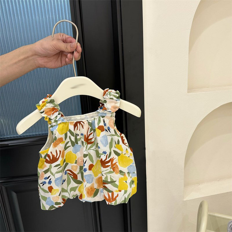 お勧め 春夏新作 韓国風子供服 シャツ キャミソール ボタニカル ブラウス パンツ ベルボトム フリル 7-15