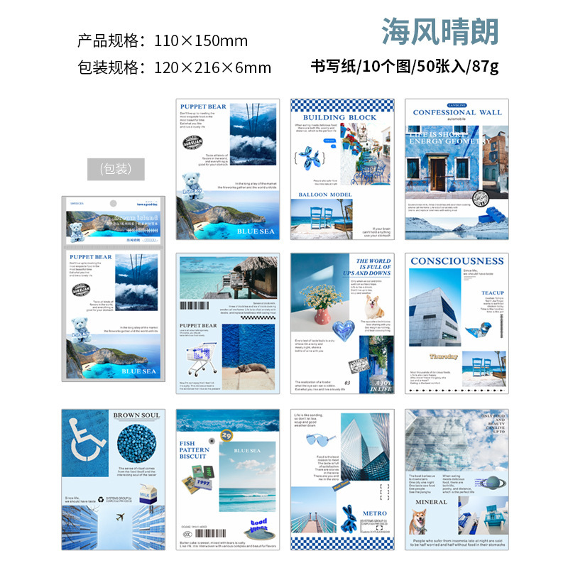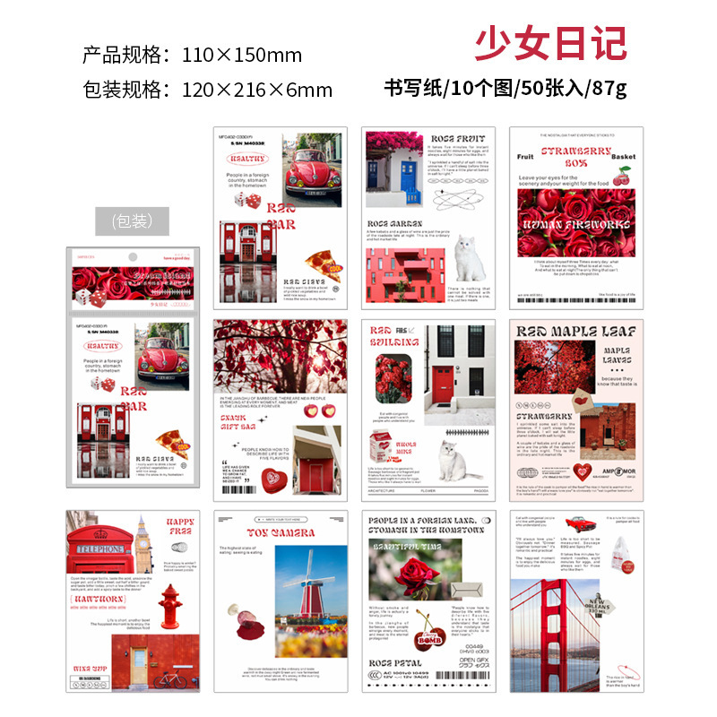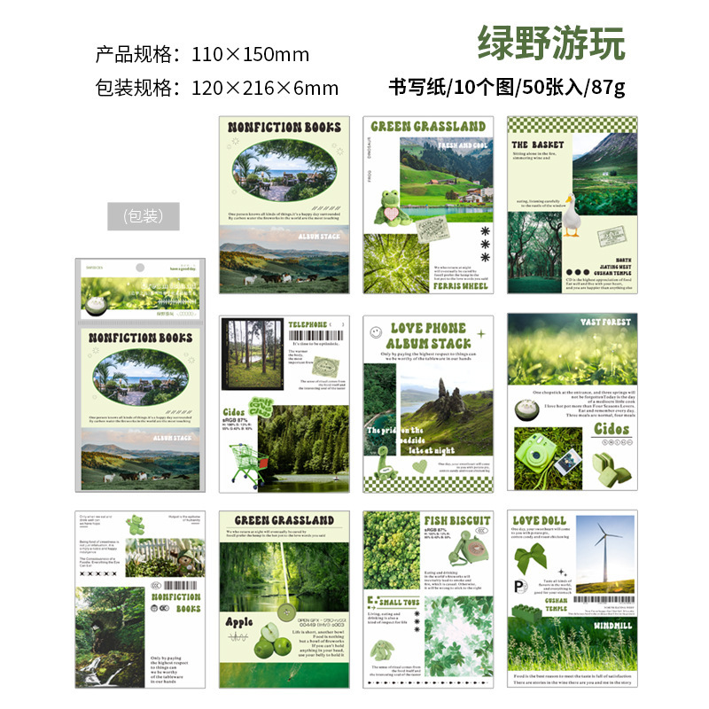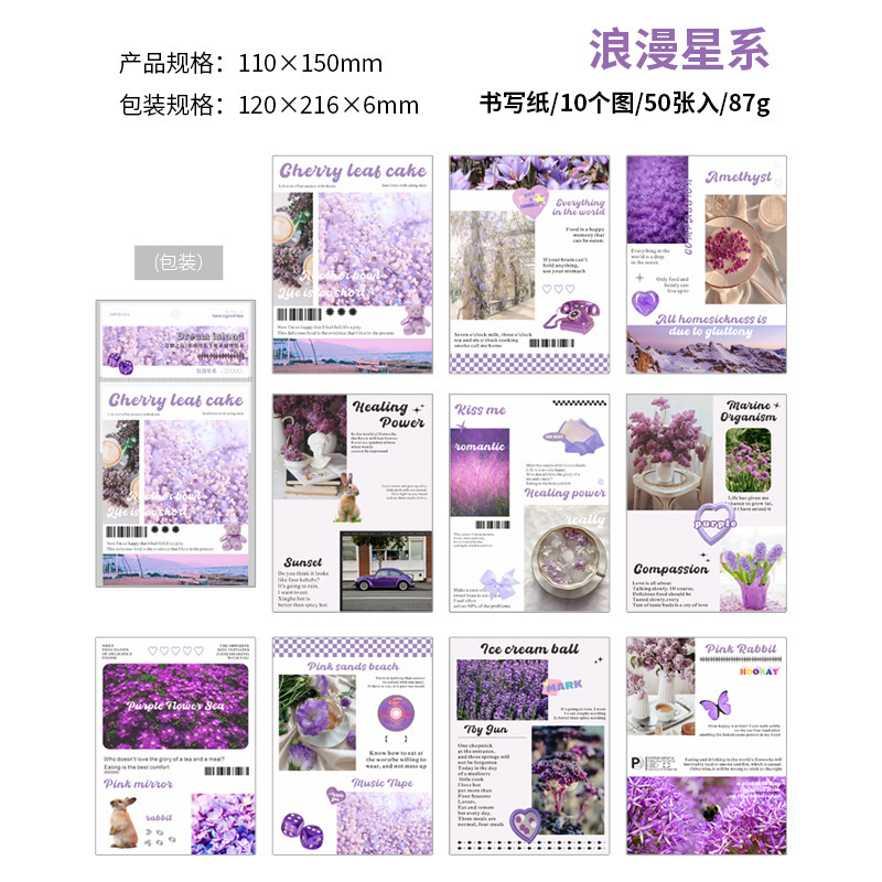 インテリア ペーパー 素材紙メモ紙 アンティーク ラベル 植物花葉 写真撮影風景 猫 イラスト 50枚入