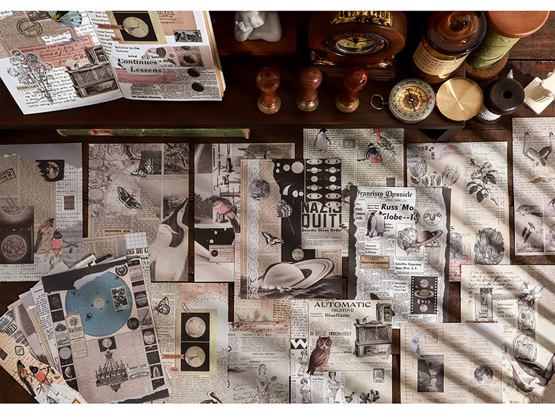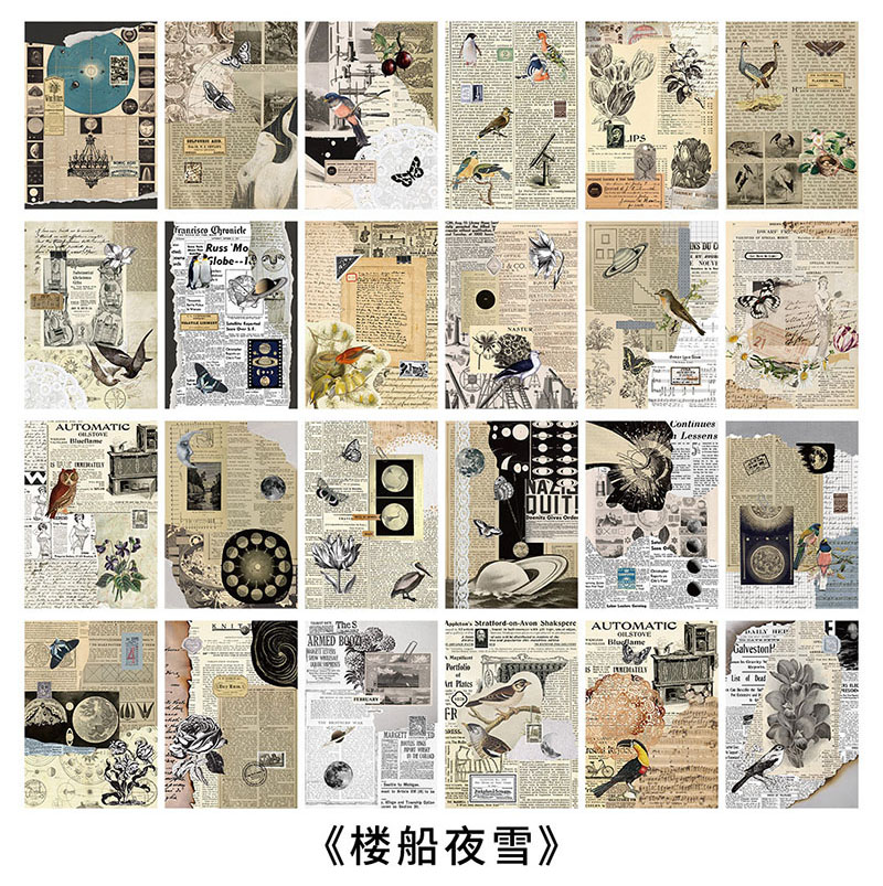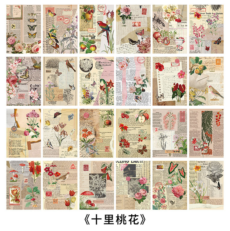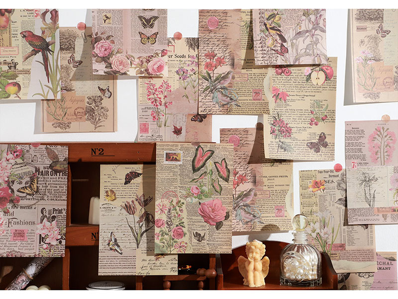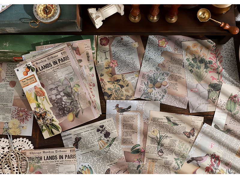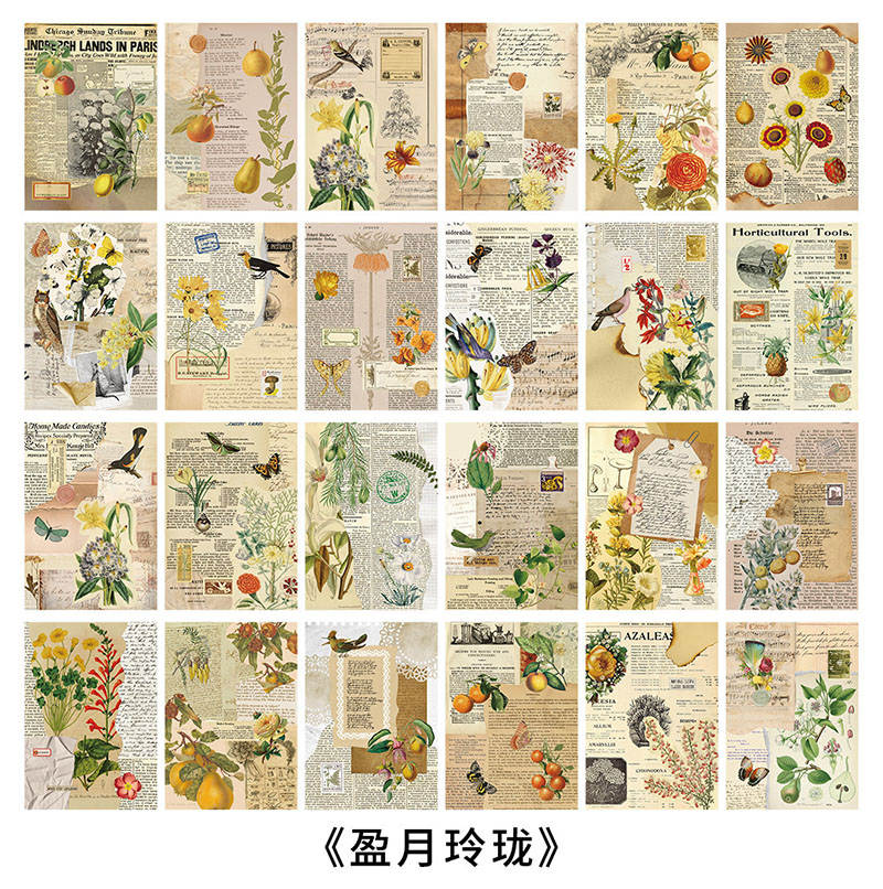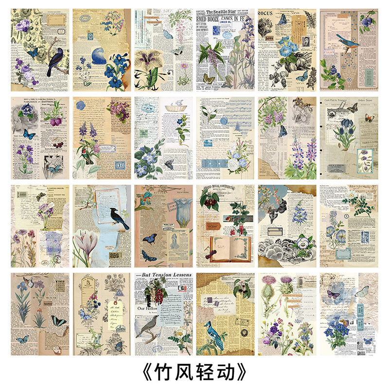 カフェ風 アンティーク メモ紙メッセージ バタフライ アニマル 花フラワー 植物 鳥 宇宙天体 24枚入