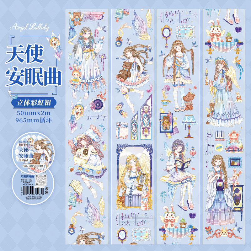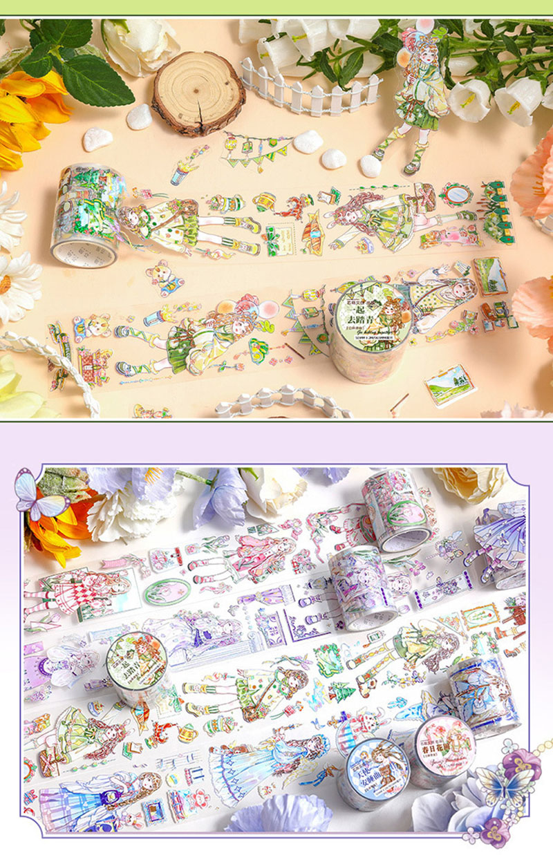 PETシール ステッカー マスキングテープ アンティーク イラスト 天使ガール フラワー 50mm*2m