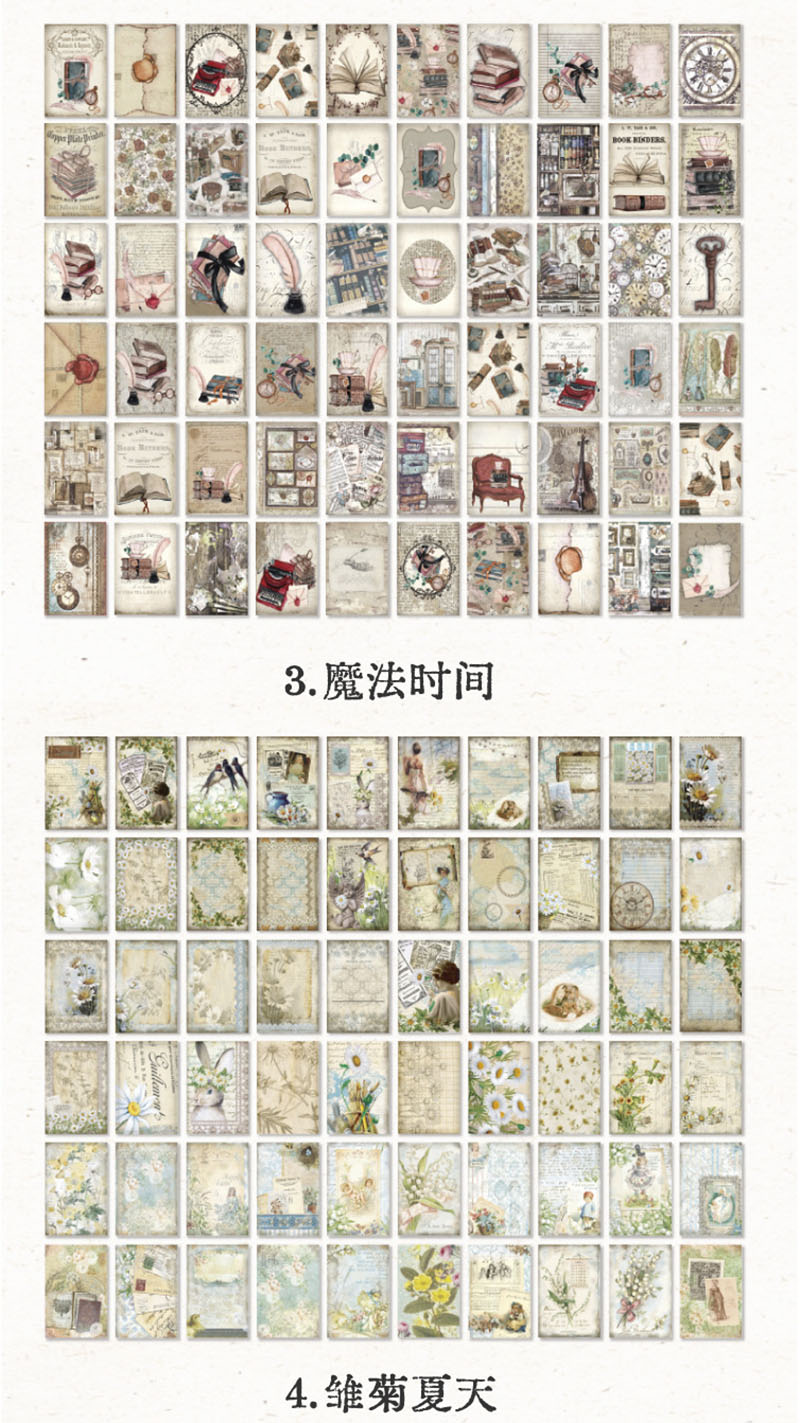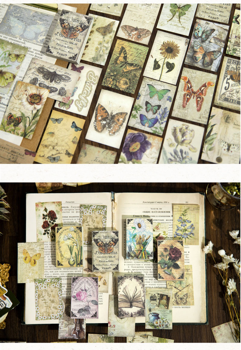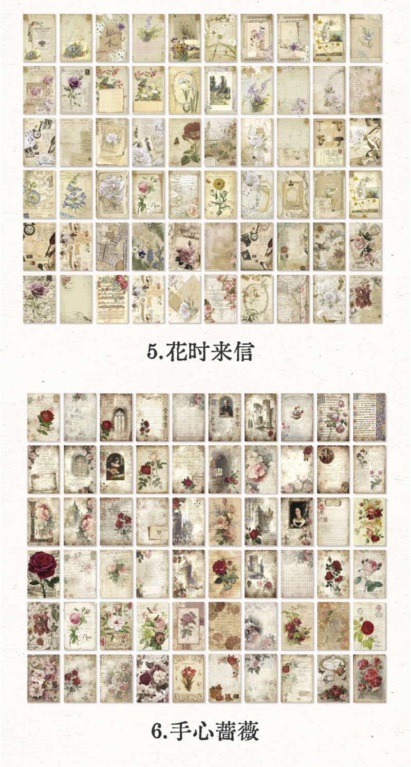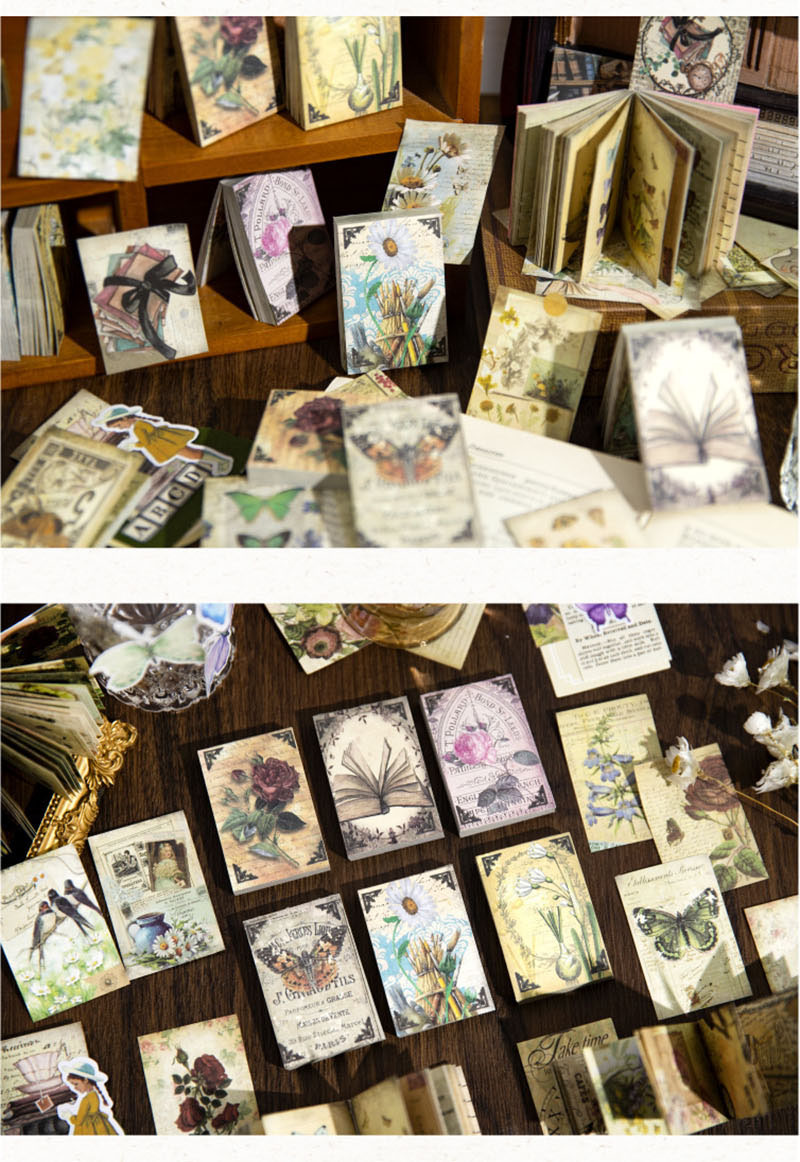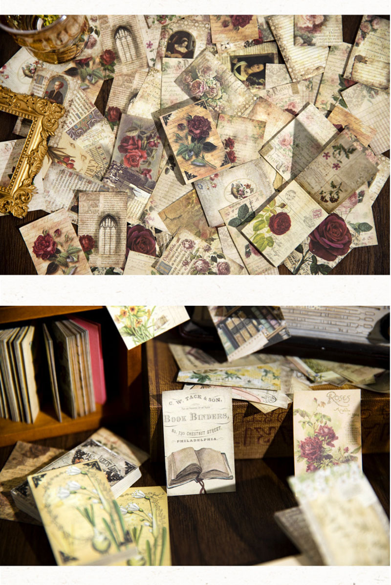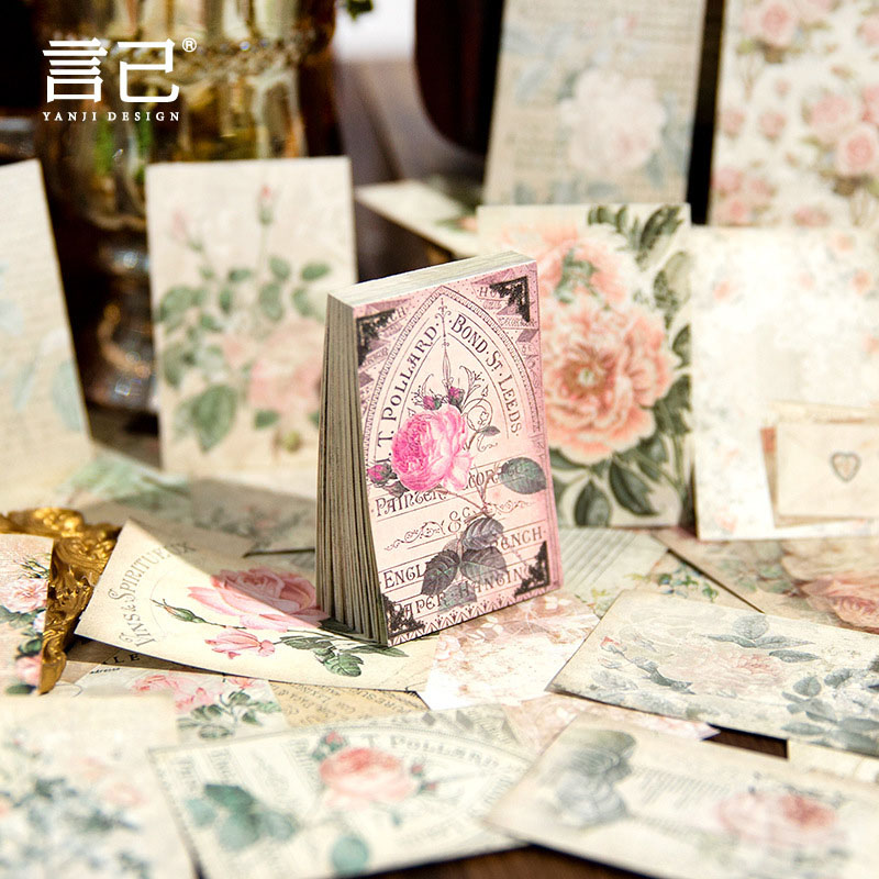 カフェ風 フラワーシリーズ アンティーク メモ紙メッセージ マジック デイジー バラ ローズ 60枚入