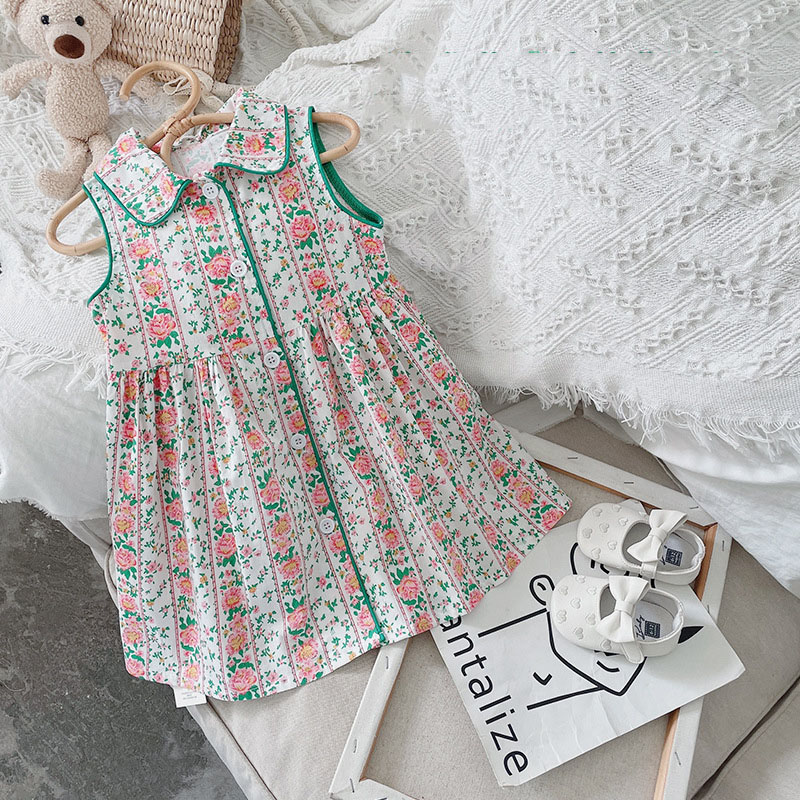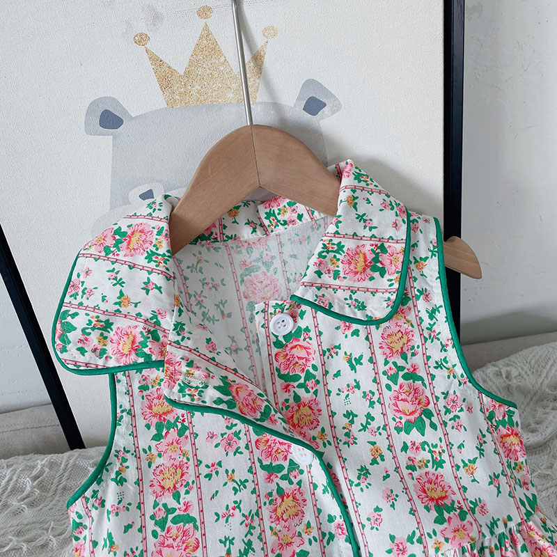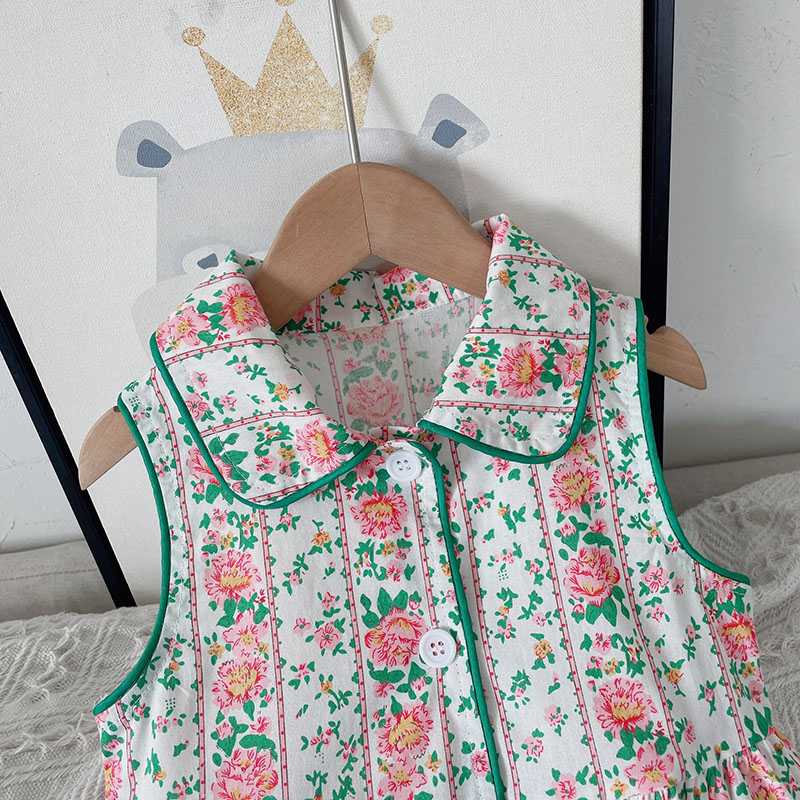 お勧め 夏 ボタニカル キッズ シャツドレス ワンピース 花柄 カントリー ノースリープ ワンピ 90-140