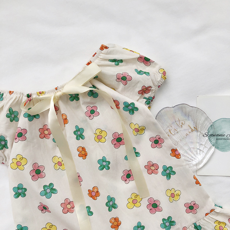 現在カテゴリ:全て商品 > お勧め 23夏 3-8歳キッズ シフトドレス 花柄 リボン フリル ワンピース Uネック パフスリープワンピ 90-130