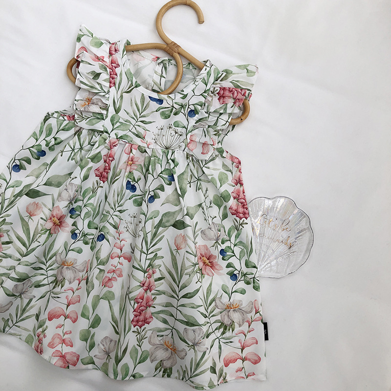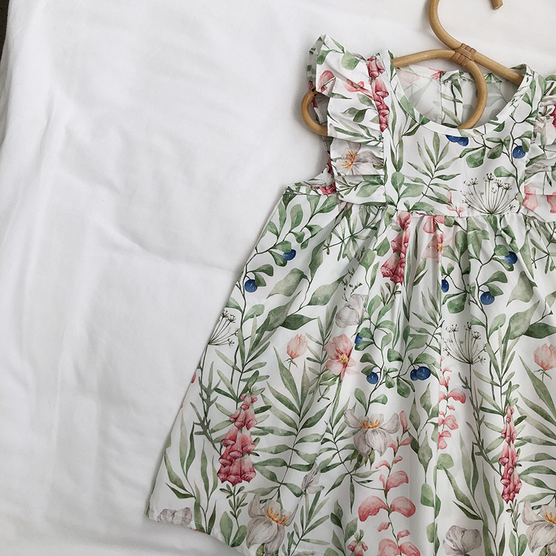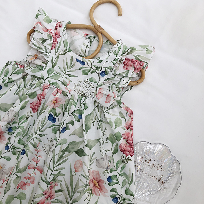 お勧め 2023夏 3-8歳女の子 レトロ キッズ 花柄 ワンピース ズフローラル ノースリープワンピ 90-140