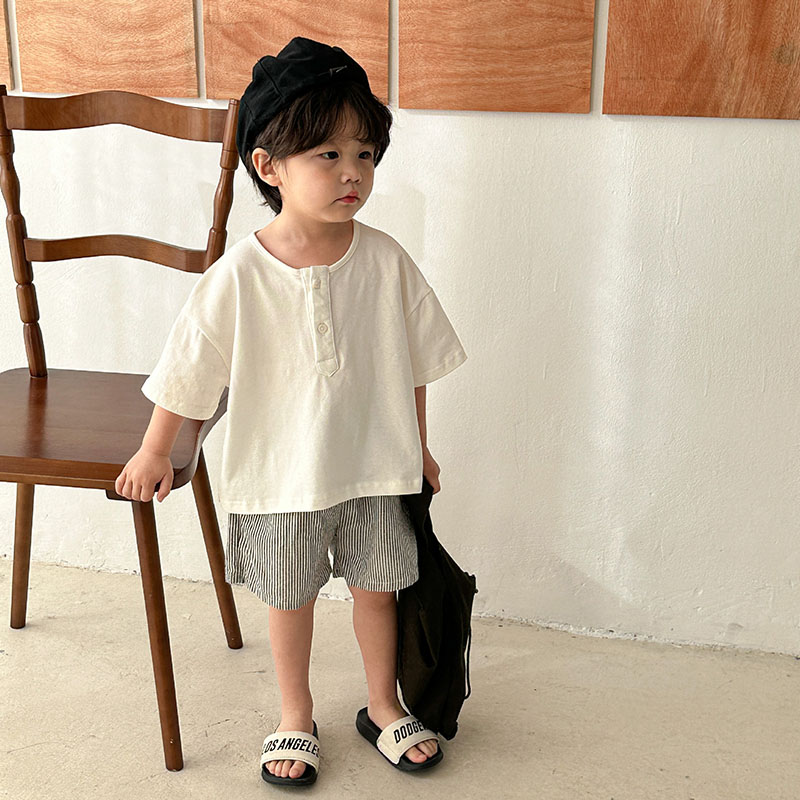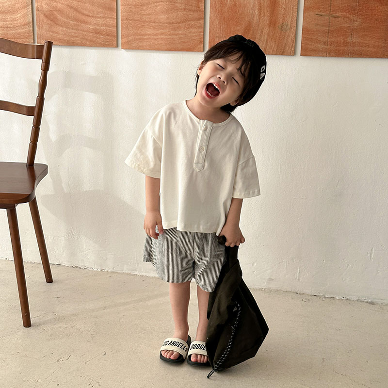 現在カテゴリ:全て商品 > お勧め 春夏 韓国風子供服男女Tシャツ+パンツ 半袖上着 ストライプ柄 ショートパンツ プルオーバー80-150