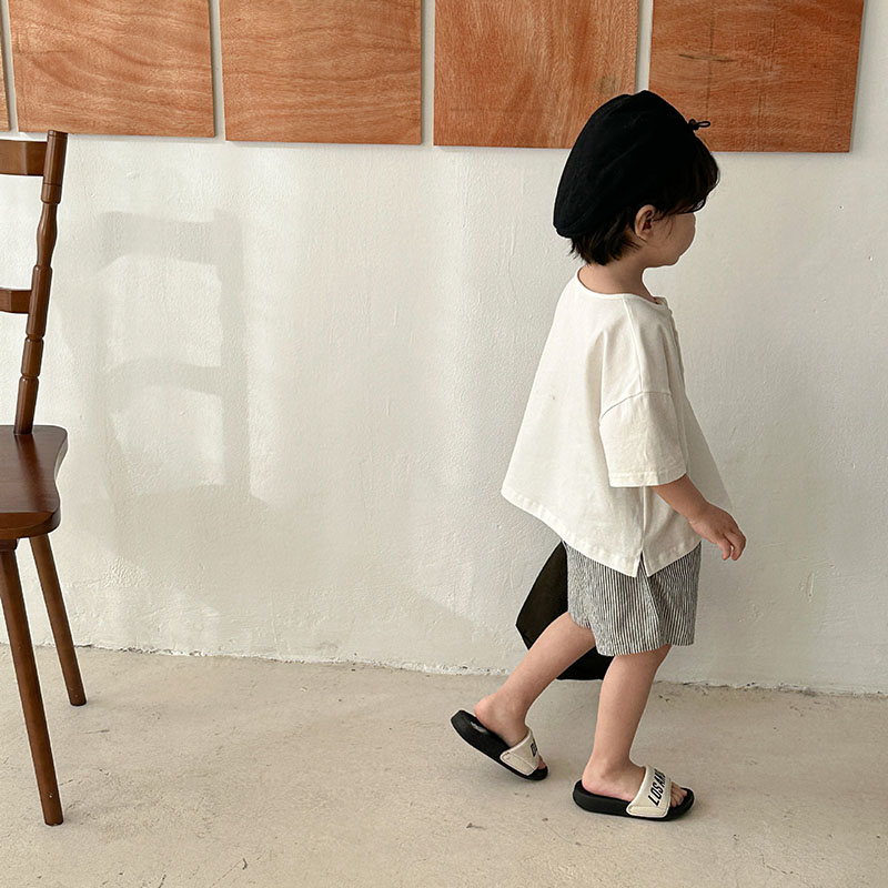 お勧め 春夏 韓国風子供服男女Tシャツ+パンツ 半袖上着 ストライプ柄 ショートパンツ プルオーバー80-150