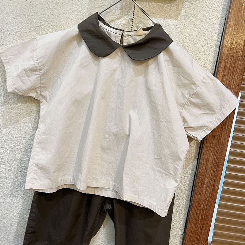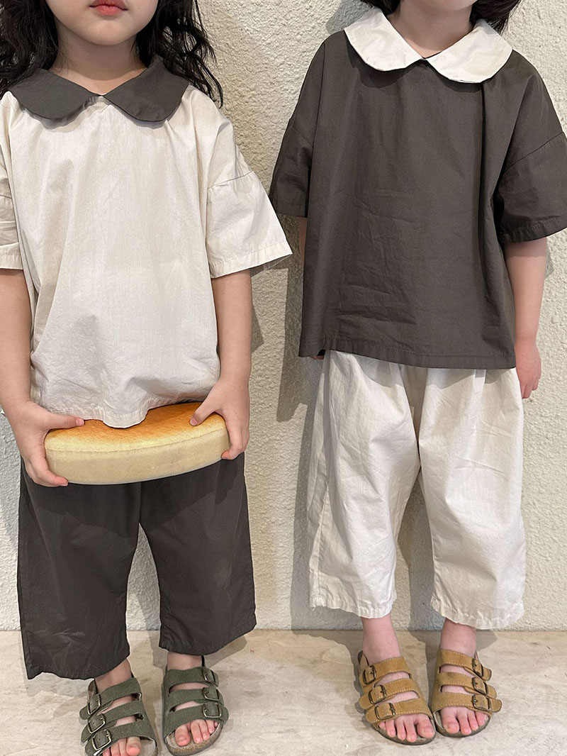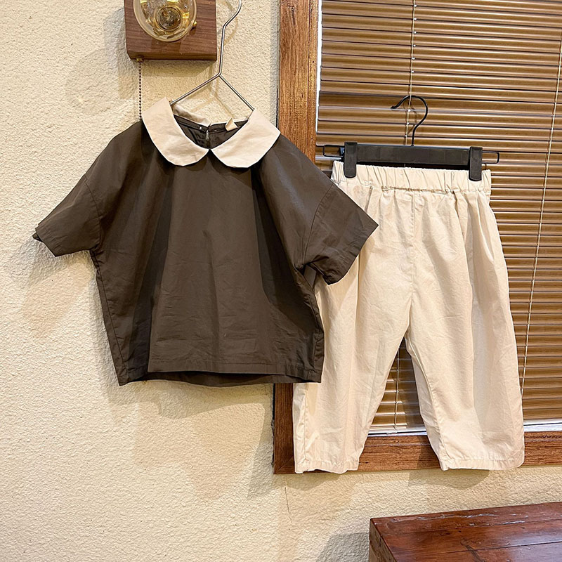 お勧め 春夏新作 韓国風子供服女の子 シャツ+パンツ 半袖上着 ブラウス 九分丈ズボン オシャレ夏 80-150