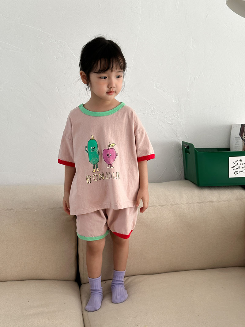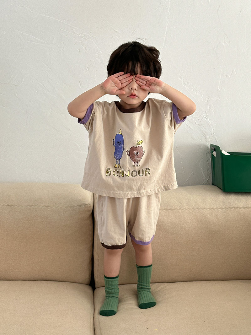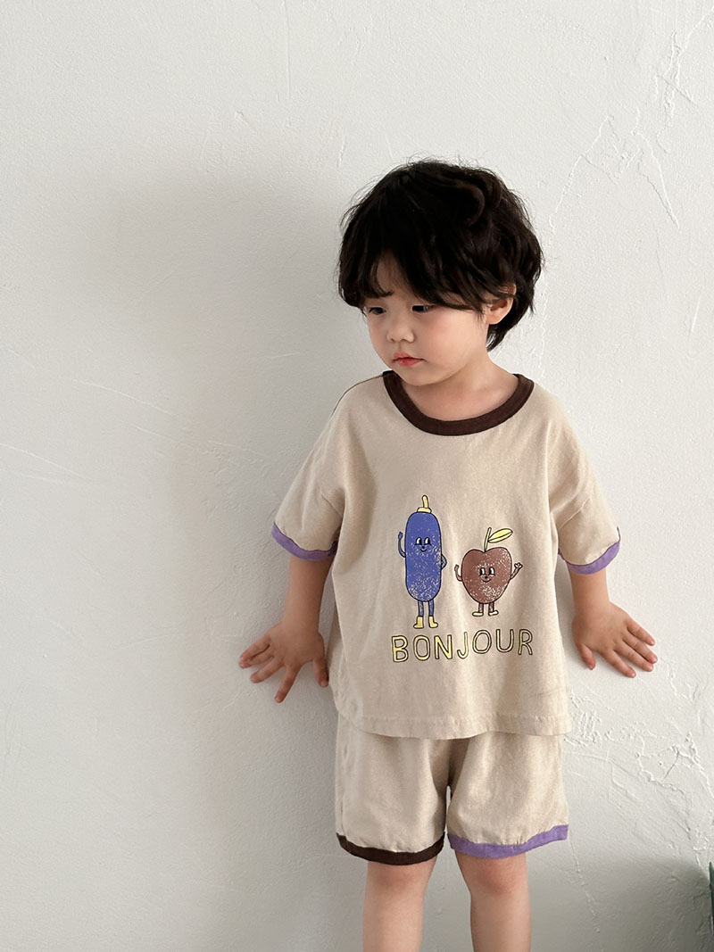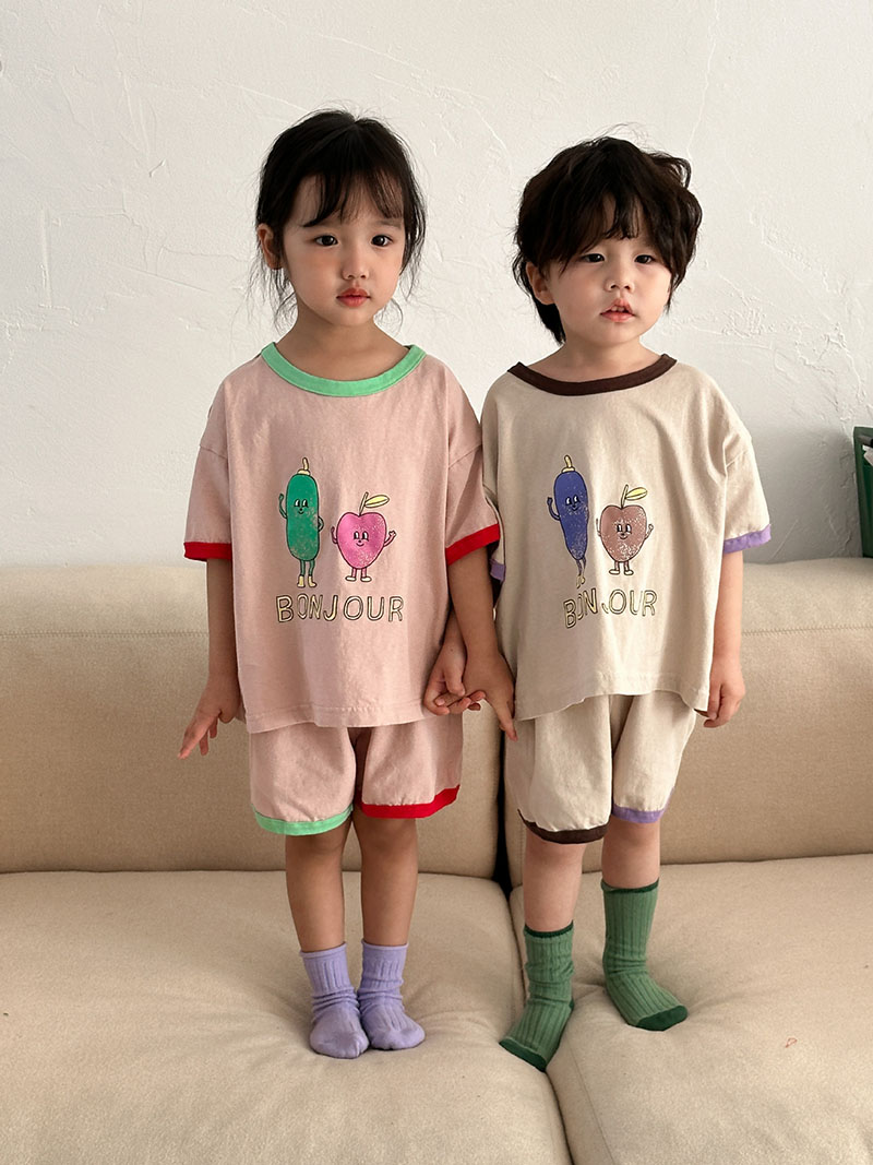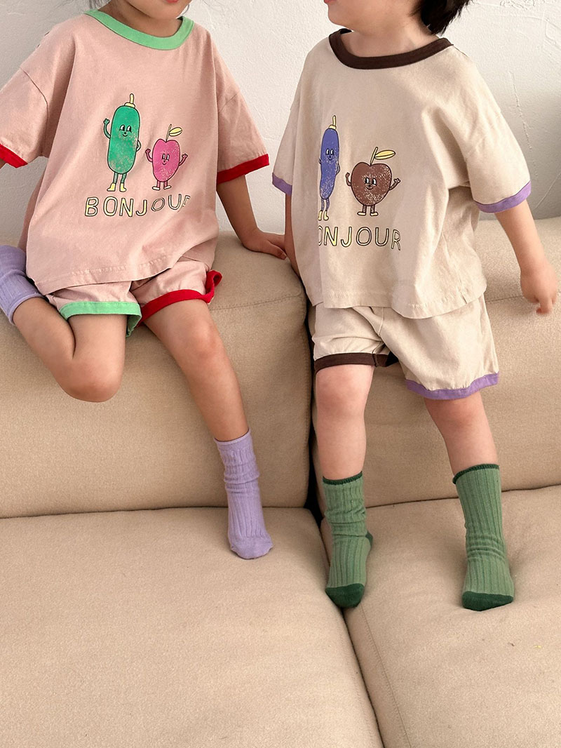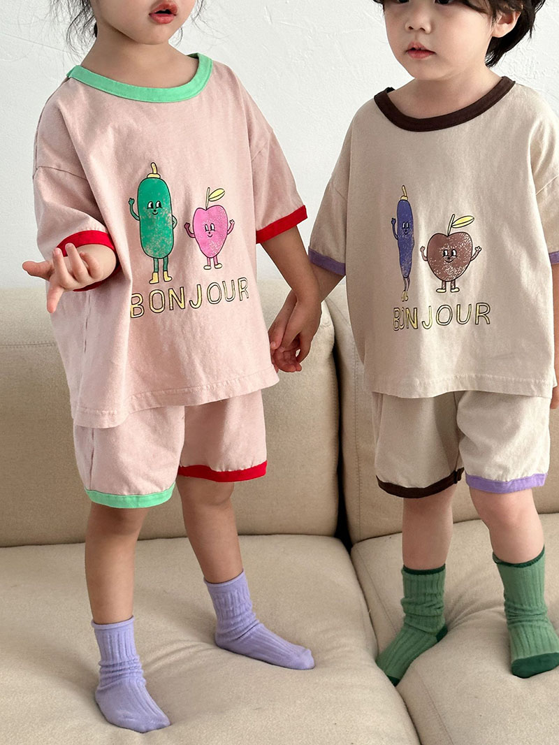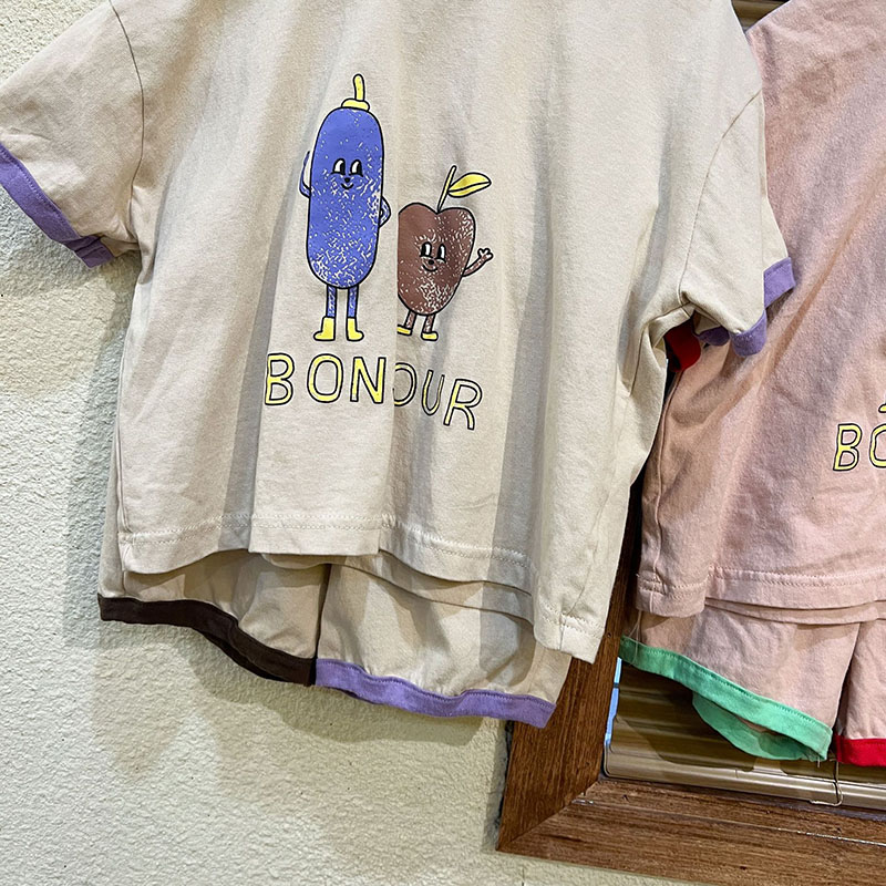 現在カテゴリ:全て商品 > お勧め 春夏新作 韓国風子供服男女 Tシャツ+パンツ 半袖上着 果物プリント ショートパンツ 80-150