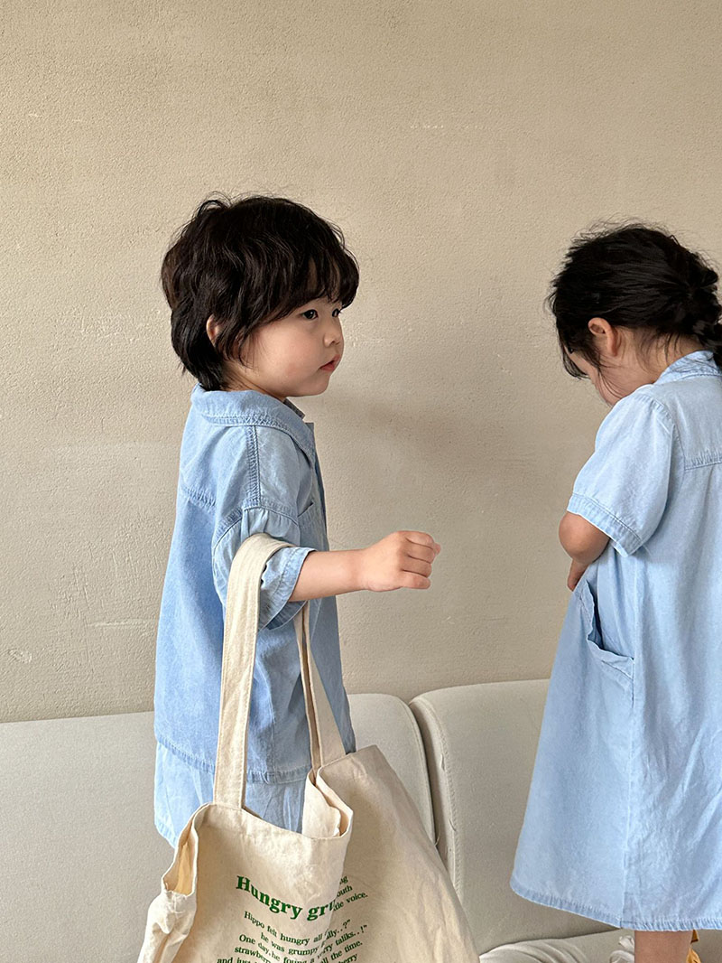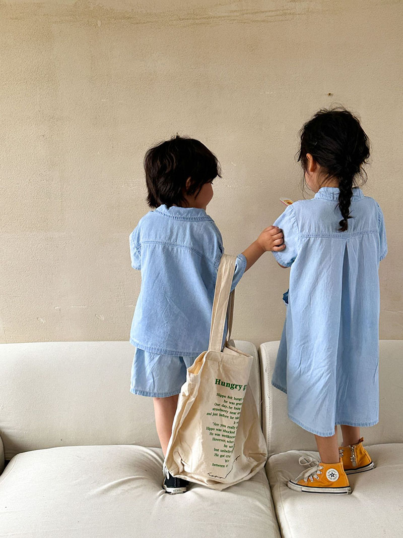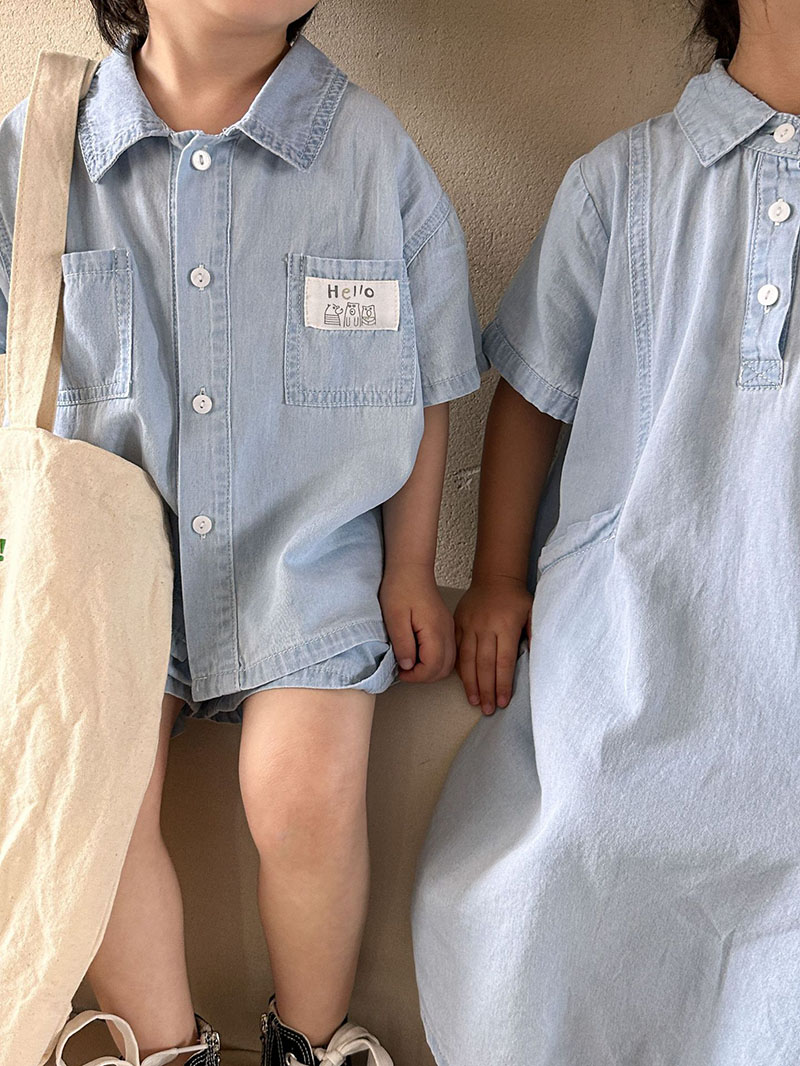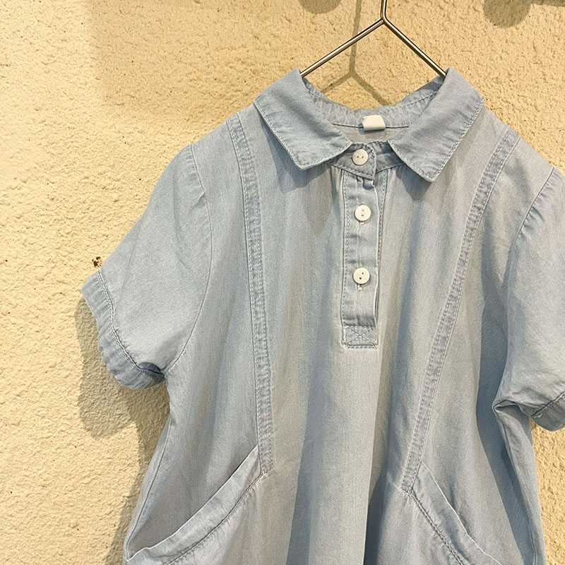 現在カテゴリ:全て商品 > お勧め 春夏 韓国風子供服シャツ+ショートパンツ 半袖上着 デニム 薄い ワンピース ブラウス 80-150