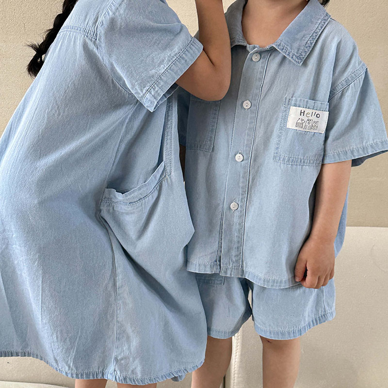 お勧め 春夏 韓国風子供服シャツ+ショートパンツ 半袖上着 デニム 薄い ワンピース ブラウス 80-150