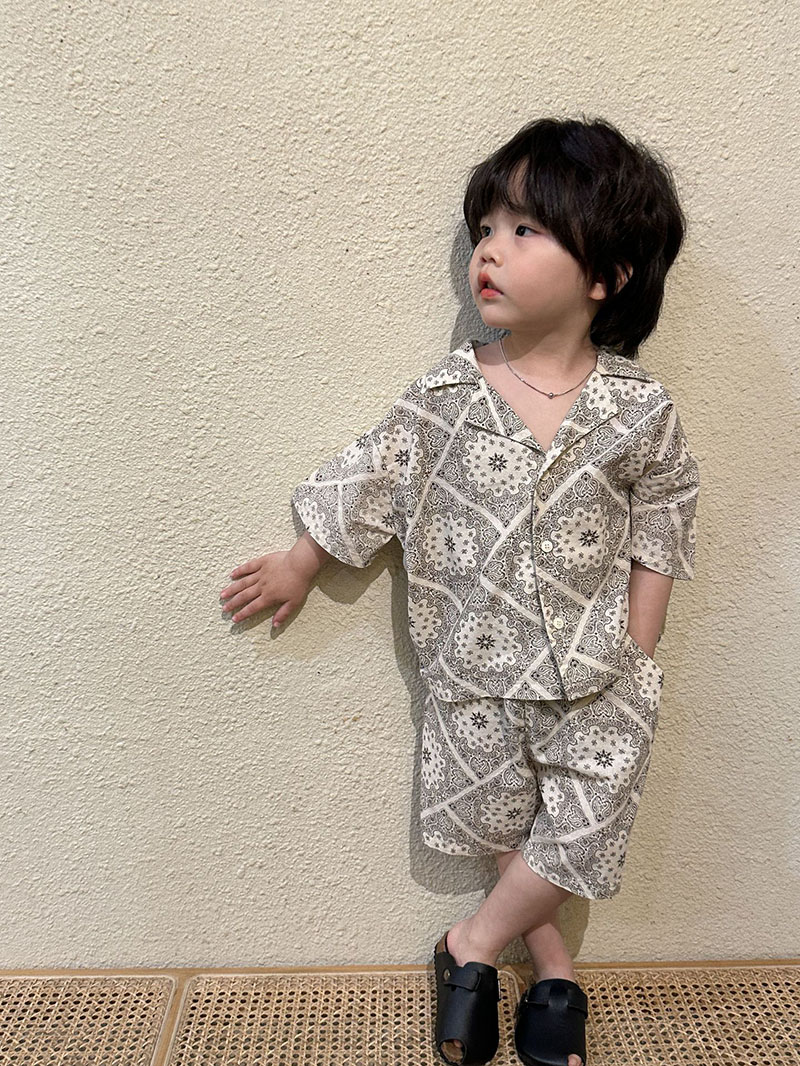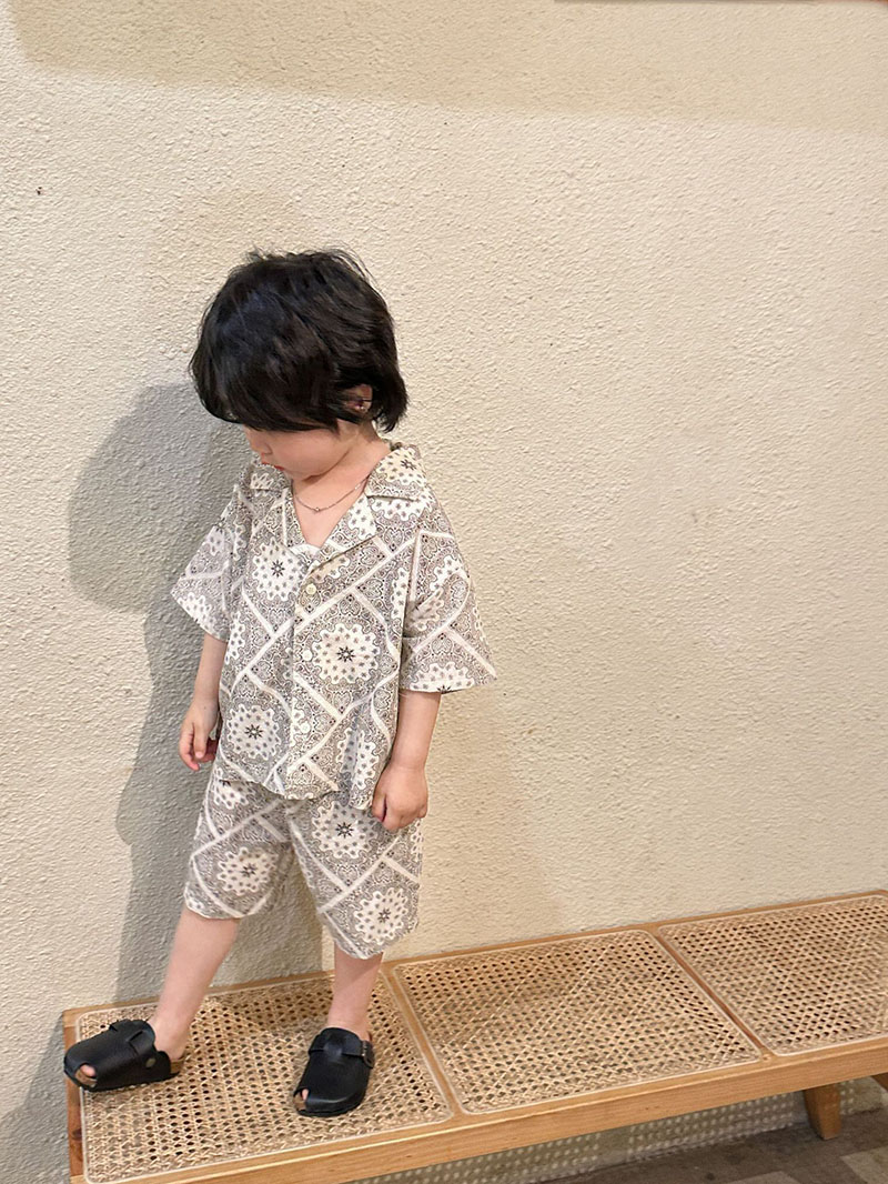 現在カテゴリ:全て商品 > お勧め 春夏新作 韓国風子供服男女シャツ+パンツ 半袖上着 レトロ花柄 ショートパンツ プルオーバー80-150